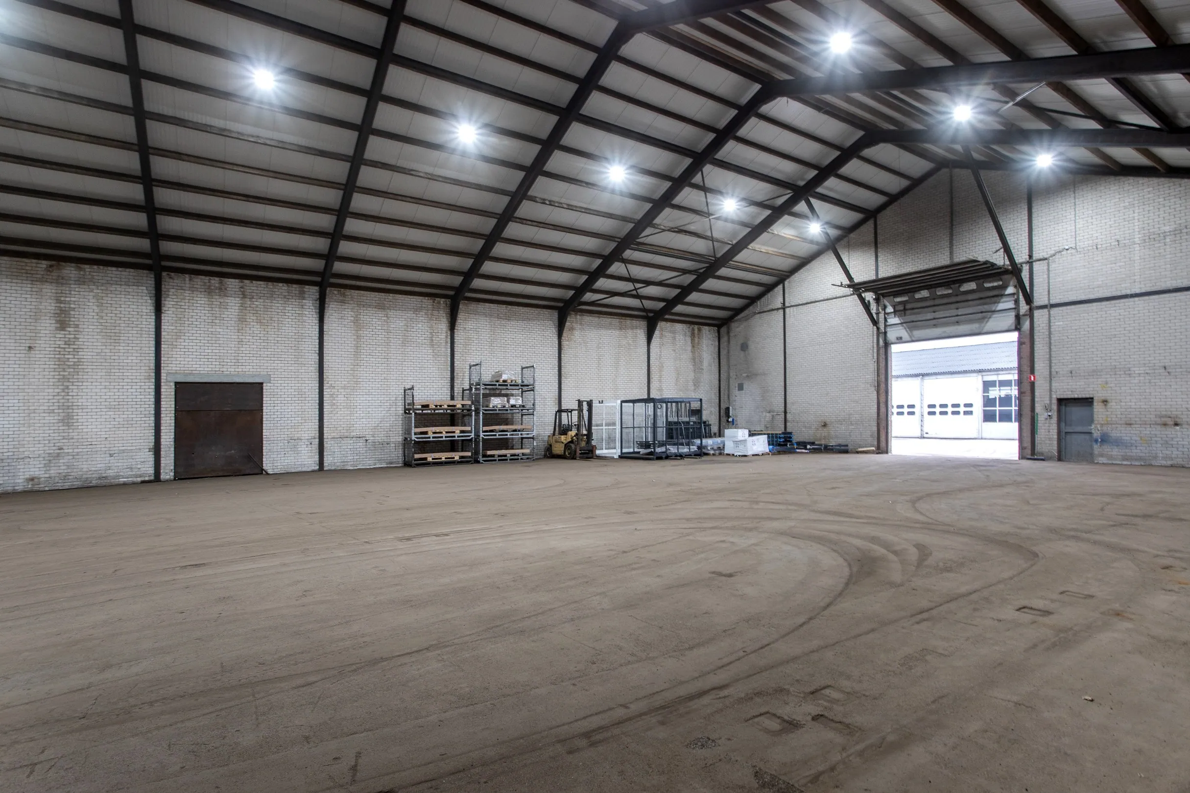 Het pand is uitsluitend geschikt voor opslag en heeft een vloeroppervlak van ruim 1.100 m2 met sectionaaldeur (4,5 m x 5 m). De hal heeft een goot hoogte van circa 6 meter en een maximale hoogte (nokhoogte) van circa 11 meter. Aan de voorzijde ligt een buitenterrein van circa 3.000 m2 met een huurprijs van € 16,00 p/m2. De hal en terrein kunnen uitsluitend tezamen gehuurd worden.