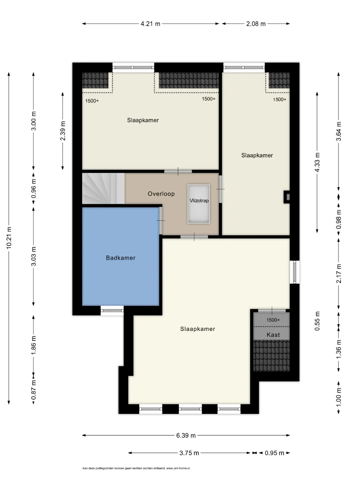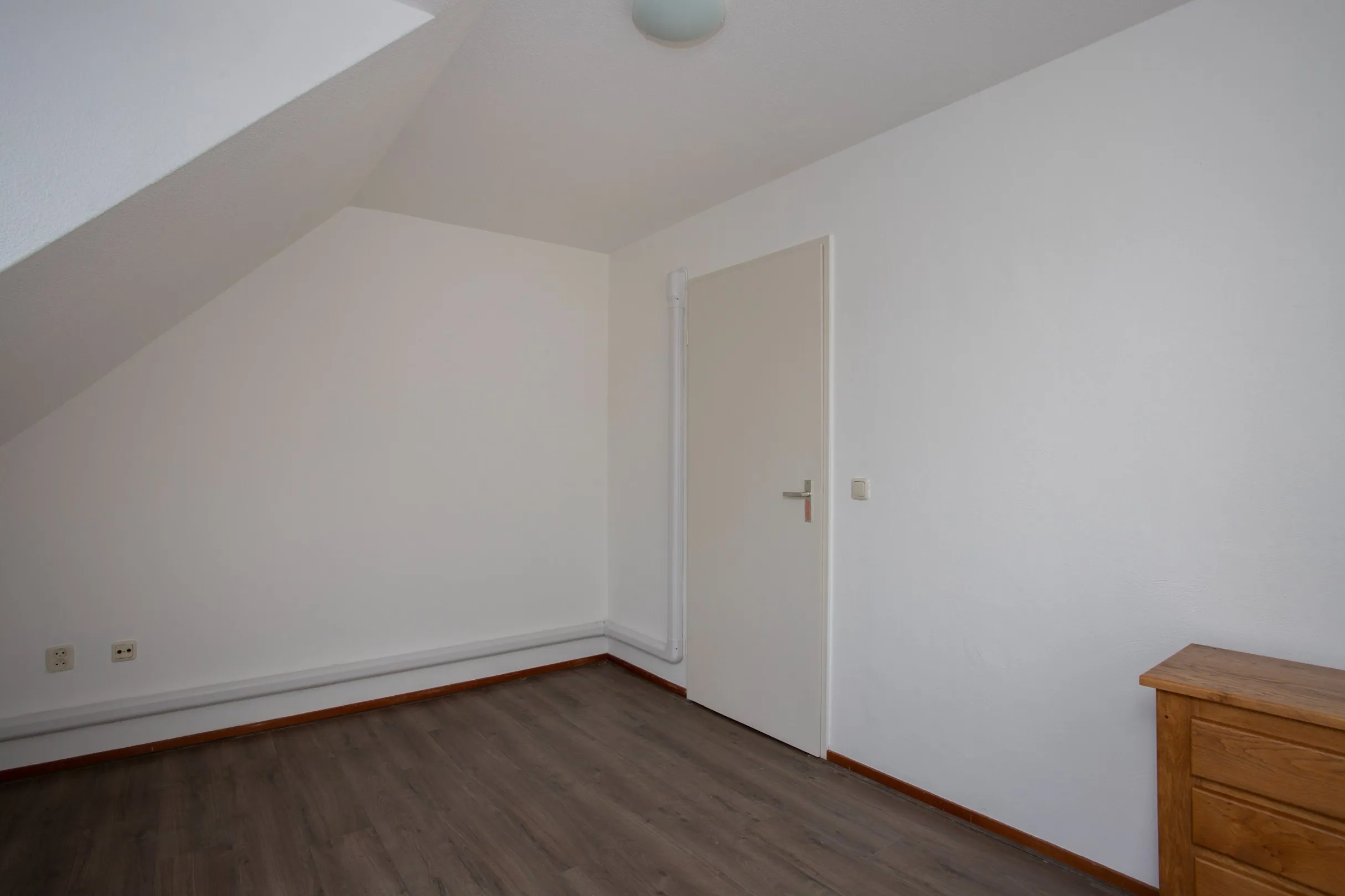 Overloop met airco en toegang tot de bergzolder via een vlizotrap. Drie ruime slaapkamers, waarvan één met inbouwkast en uitzicht over de Markt.