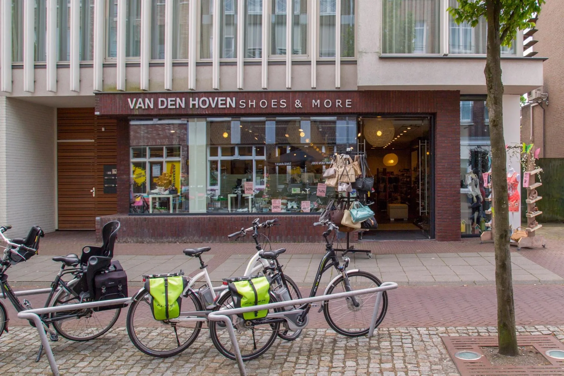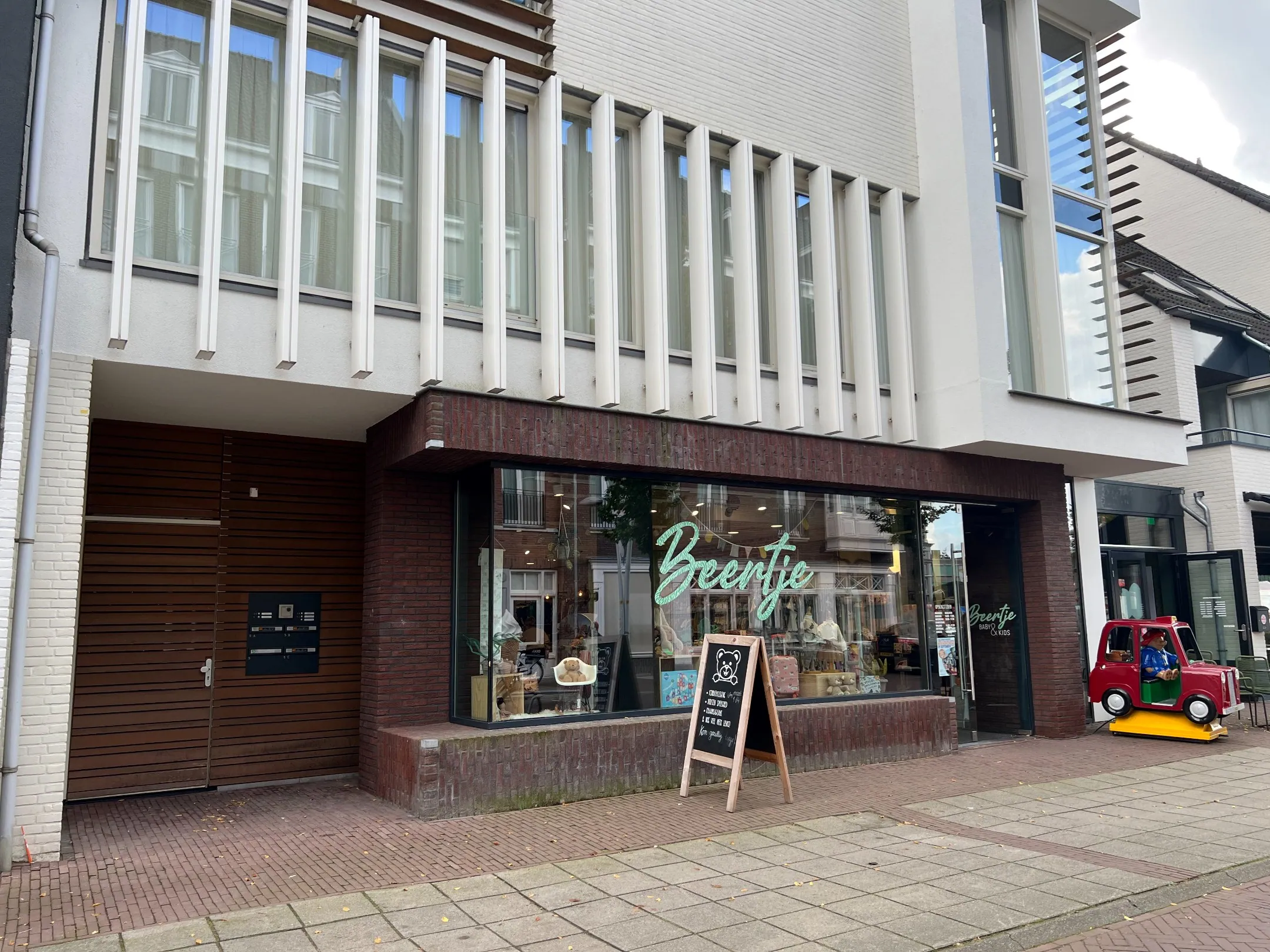 De winkel zelf is gelegen op de begane grond van een kleinschalig appartementencomplex.