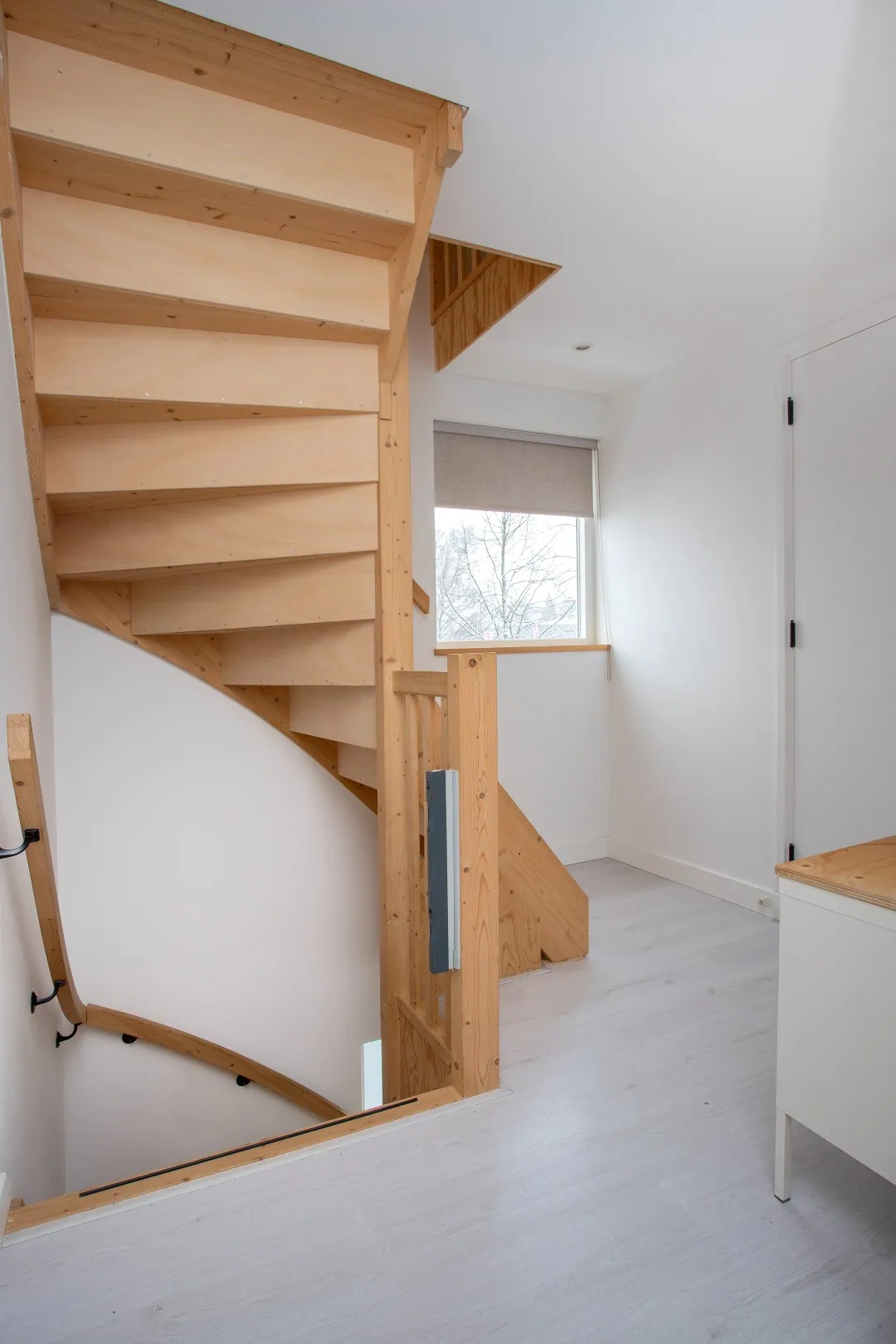- Eerste verdiepingsvloer is van beton, de tweede verdiepingsvloer is van hout.