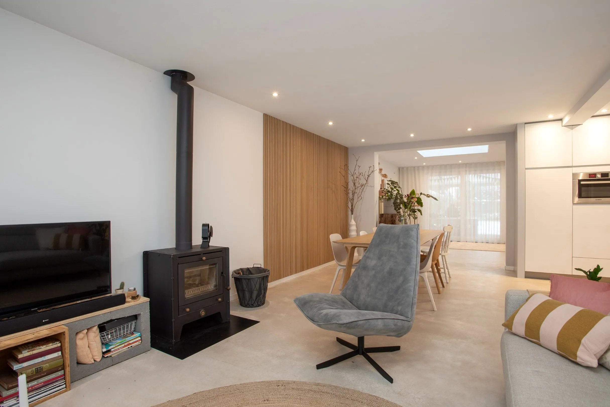 - Vloerverwarming over de gehele begane grond en het eerste gedeelte van eerder genoemde hobbyruimte/mantelzorgwoning/salon/kantoor.