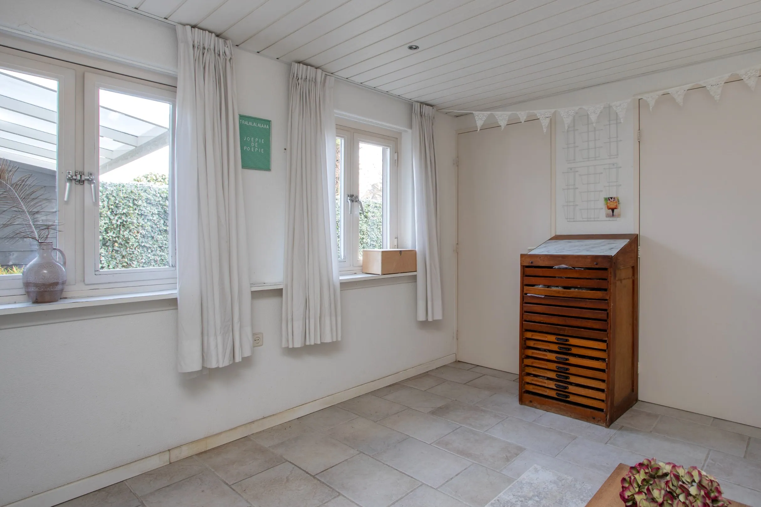 - Op het Noord-Oosten gelegen achtertuin met 2 buitenkraantje en een handpomp aan de buitenzijde van de buitenberging.