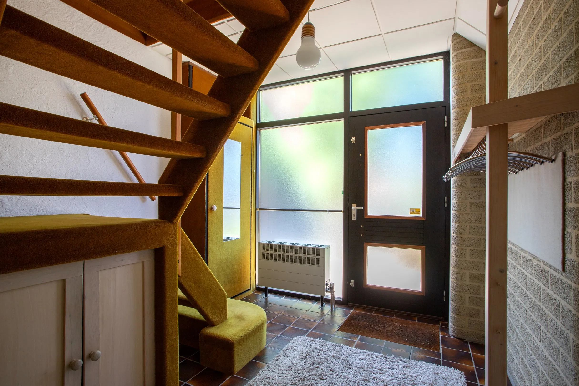 Via de ruime hal/entree met meterkast (10 + 3 groepen, krachtstroom en Enphase-systeem), trapopgang en toegang tot zowel de woonkamer als de badkamer, betreedt u deze verrassende woning.