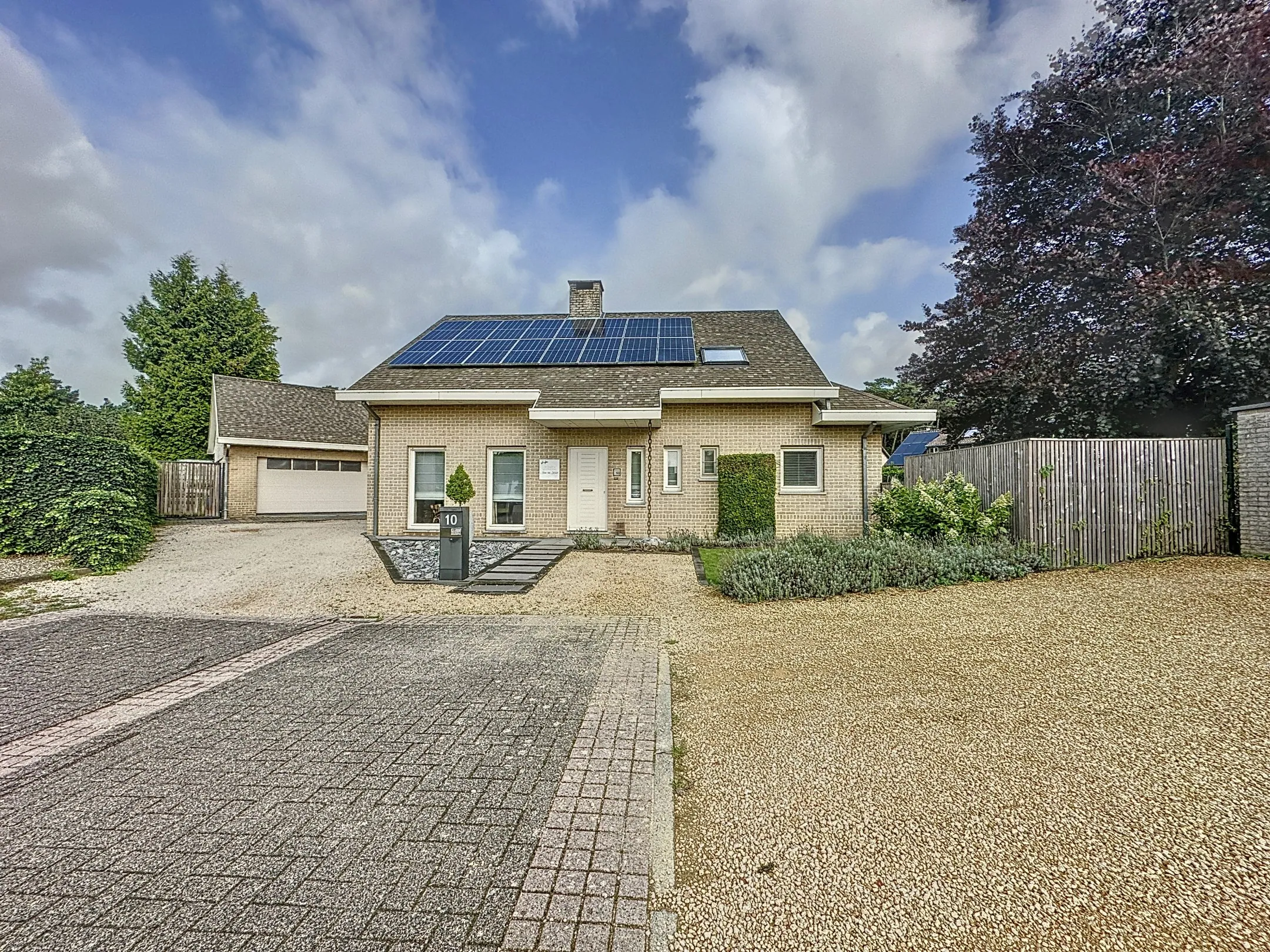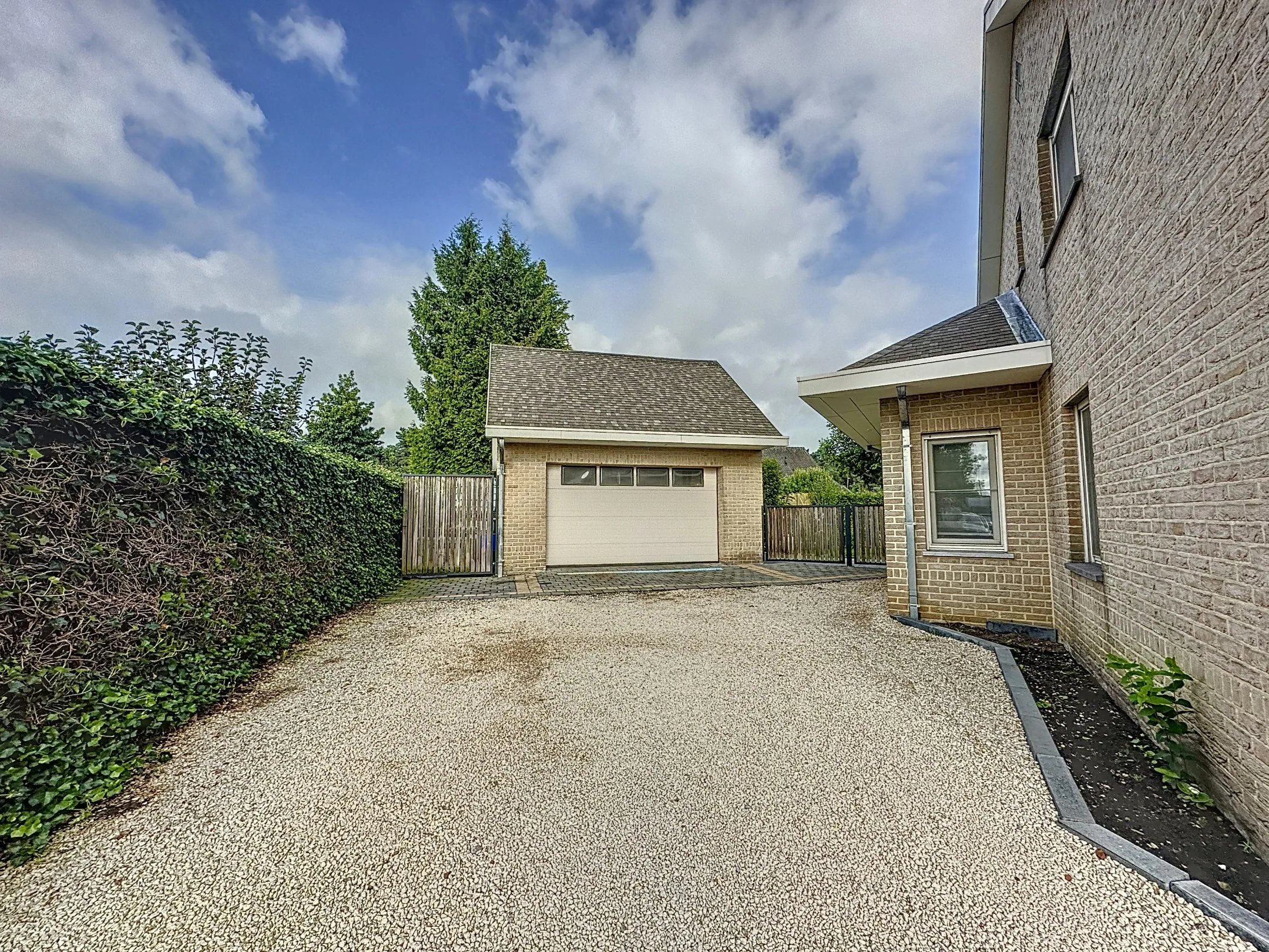 Links van de woning is een zeer grote garage, deze is volledig onderkelderd en heeft een zolderverdieping die ingericht werd als woonkamer.