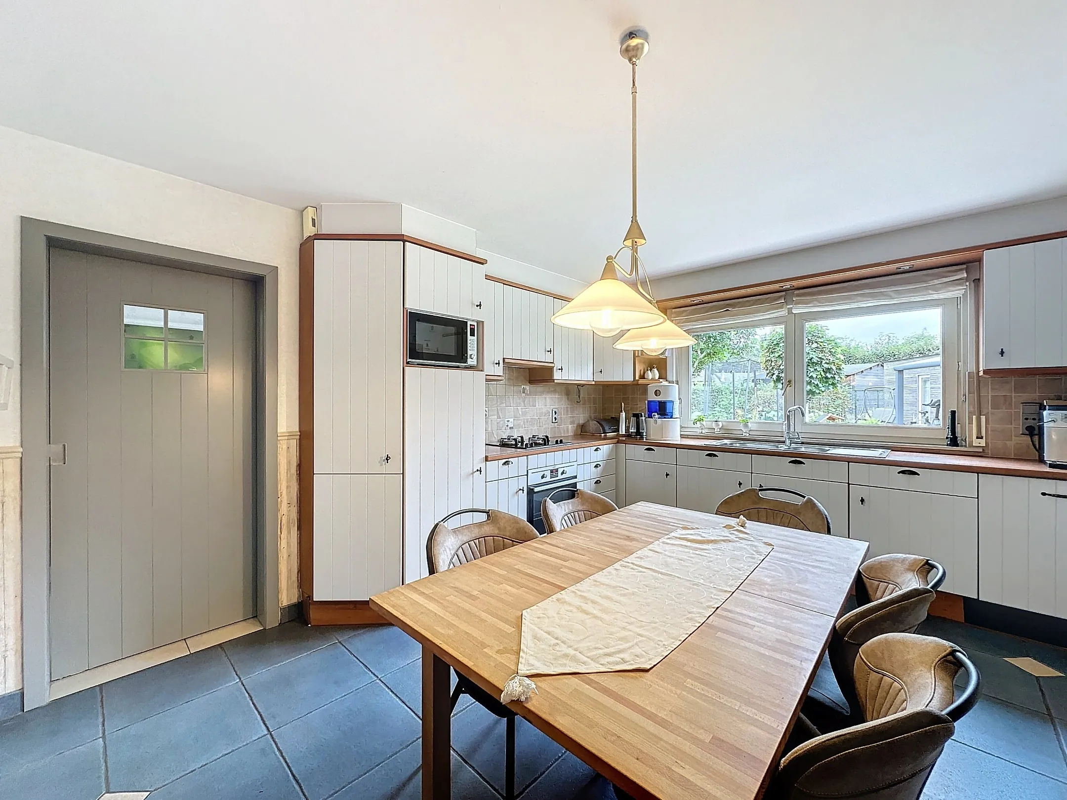 De keuken is voorzien van alle comfort zoals combi-oven, vaatwasser, ingebouwde koelkast en gasfornuis.