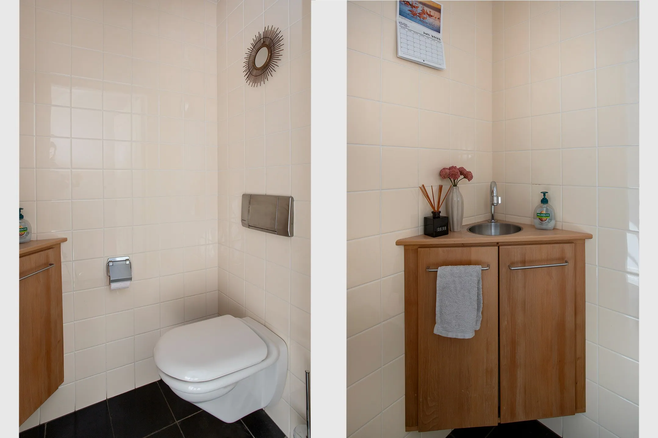 Teruggekeerd op de overloop treft u nog een wasruimte welke beschikt over witgoedaansluitingen en een uitstortgootsteen, en vervolgens nog een separaat toilet.