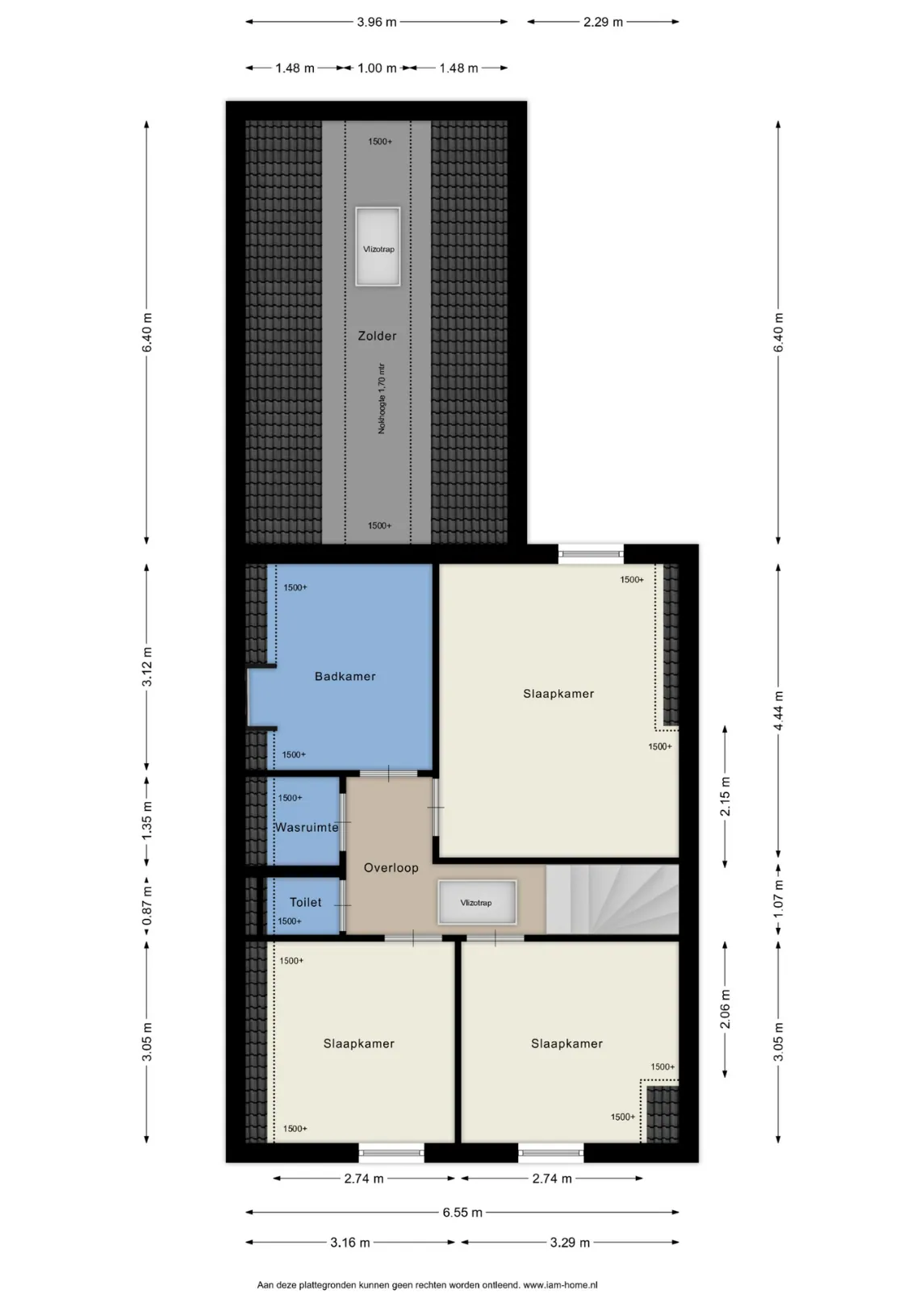 De overloop biedt toegang tot drie slaapkamers, de badkamer, een separate toiletruimte, wasruimte en via een vlizotrap tot de tweede verdieping.