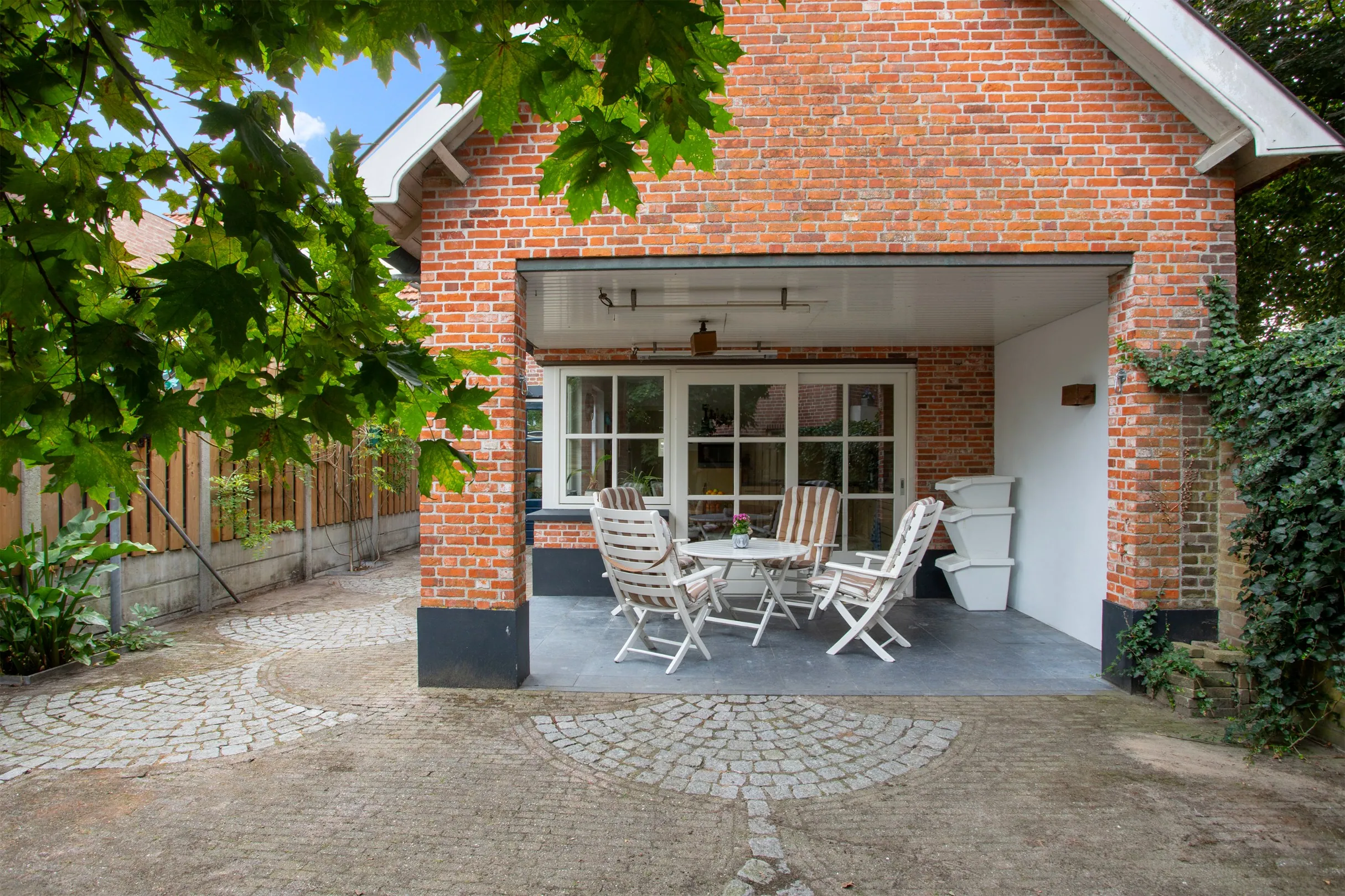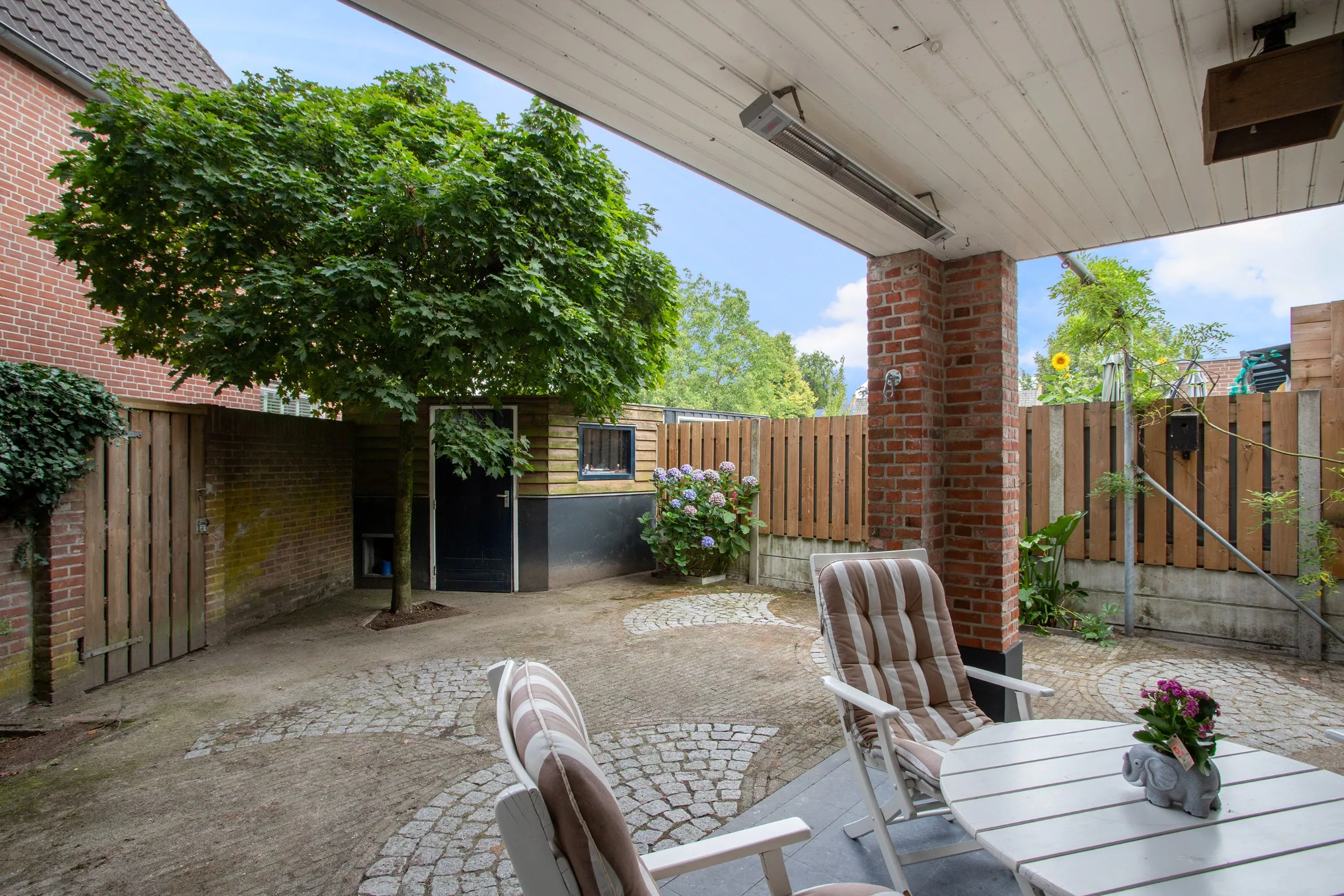 De groene achtertuin biedt volop privacy én een prachtig uitzicht op de kerktoren van Diessen. Hier kunt u heerlijk ontspannen, bijvoorbeeld onder de ruime overkapping met heaters. Boven deze overkapping bevindt zich een handige vliering, die doorloopt boven de keuken en veel opbergruimte biedt. Achter in de tuin staat een tuinhuis met elektra en via de vrije achterom is de tuin ook achterlangs bereikbaar.