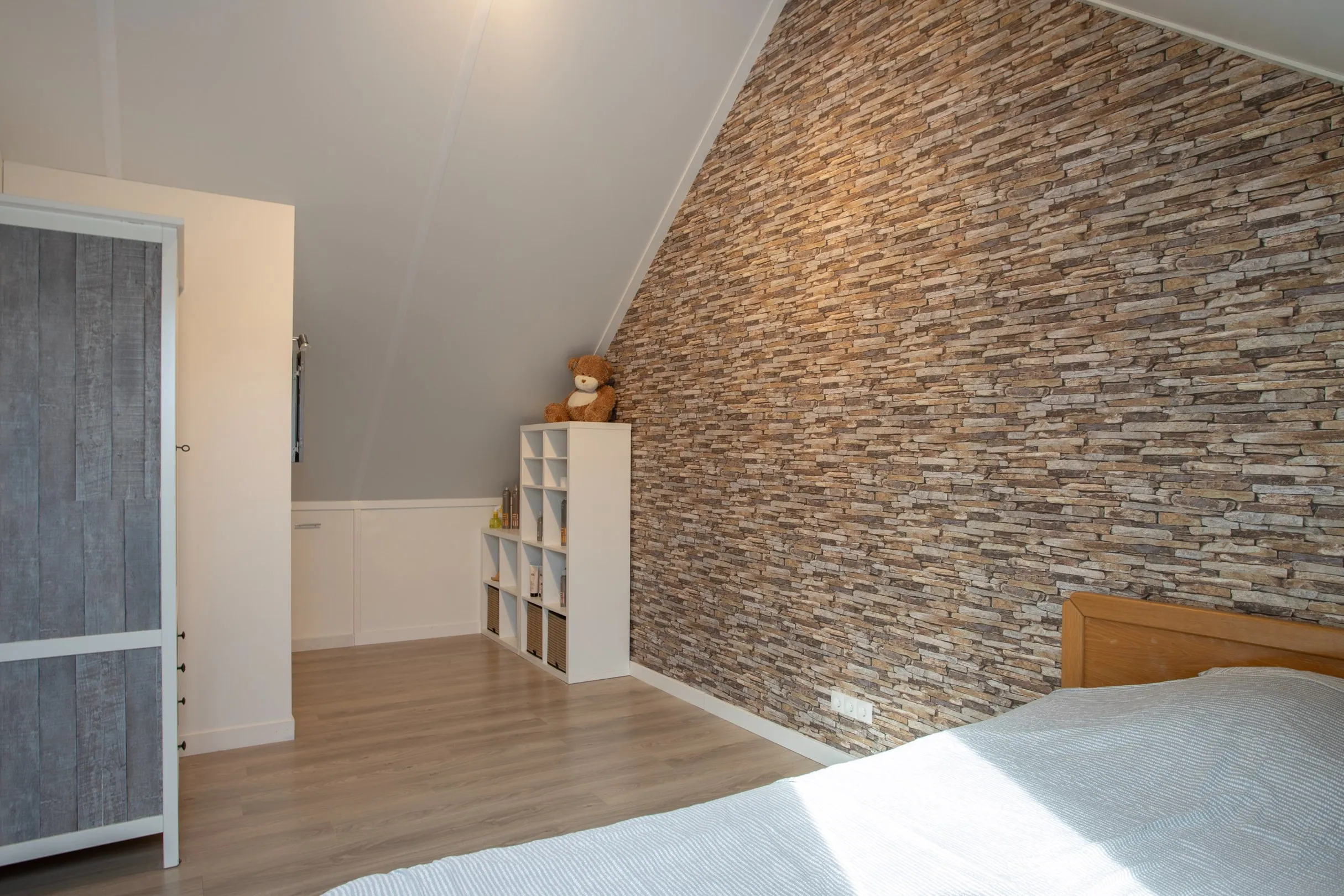 Middels een vaste trap op de overloop komt u op de 2e verdieping. Op de 2e verdieping is een technische ruimte gerealiseerd met de omvormer van de zonnepanelen, de cv-installatie (ATAG E325EC, 2018), de WTW-installatie, alsmede de aansluitingen voor wasmachine en eventueel droger. Verder is op de 2e verdieping een vierde slaapkamer gerealiseerd met twee dakramen aan de achterzijde voor natuurlijk lichtinval en ventilatie. De zolderruimte heeft kastruimte onder de kapschuinte.