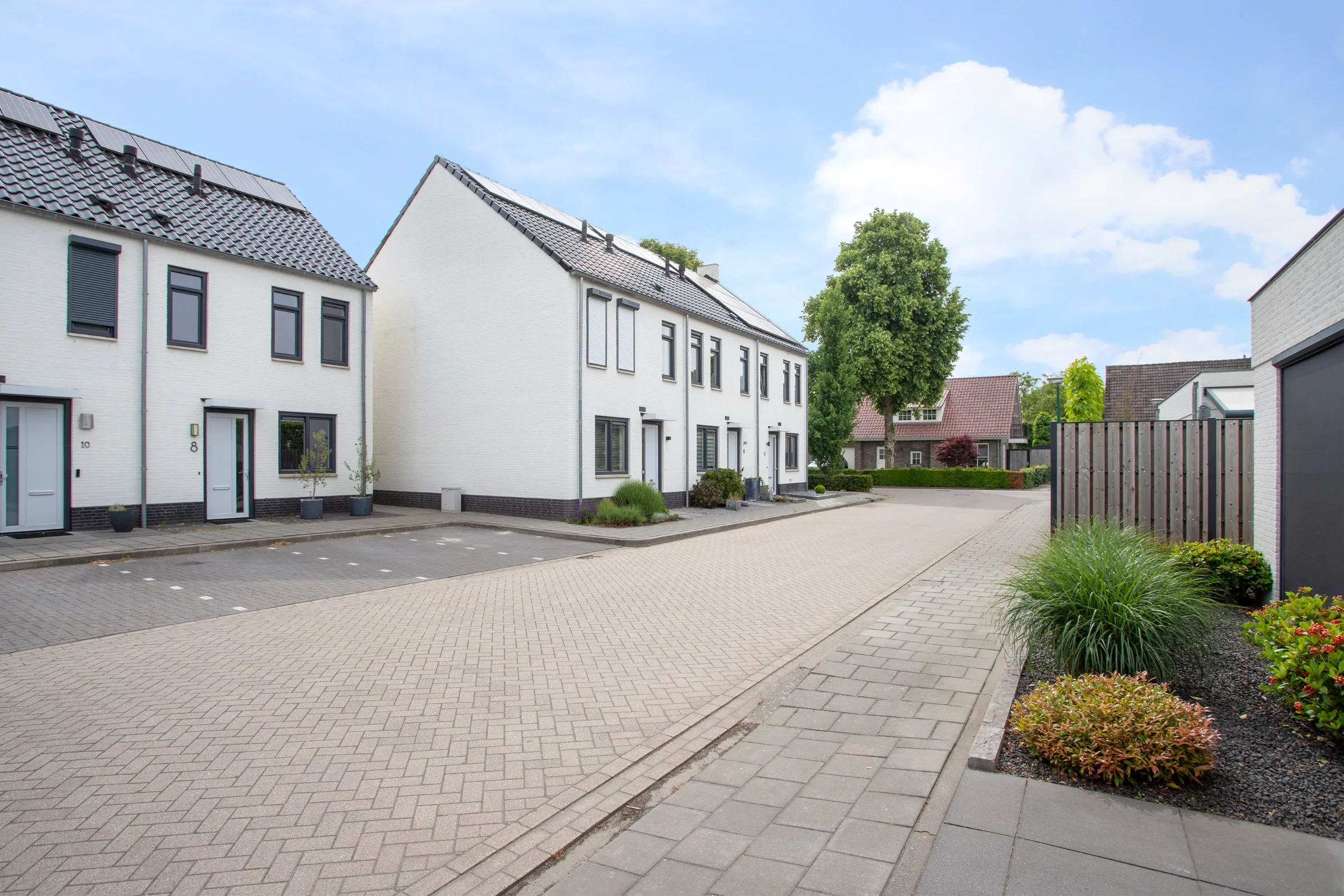Nagenoeg nieuwe, netjes afgewerkte tussenwoning op 112 m² met berging, overkapping en een vrije achterom aan het Burg. Houbenplein 4 te Luyksgestel.