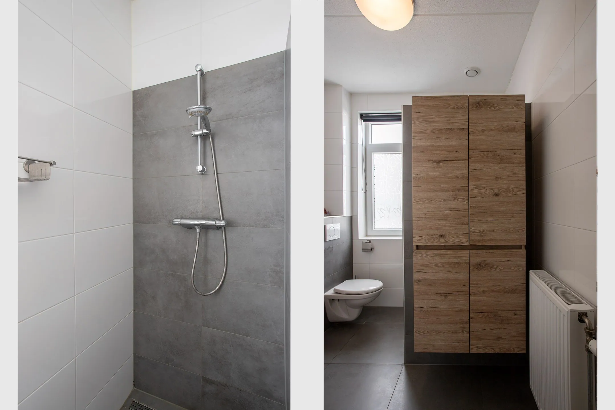 Teruggekeerd in de hal gaat u met een vaste trap naar de 1e verdieping. Aan de overloop liggen drie slaapkamers en een badkamer, alsmede een vaste trap naar de 2e verdieping. De slaapkamers hebben allen natuurlijk lichtinval en natuurlijke ventilatie. De badkamer is voorzien van een inloopdouche met thermostaatkraan, toilet en vaste wastafel met spiegelverwarming. De badkamer heeft, naast natuurlijke ventilatie, ook mechanische ventilatie.