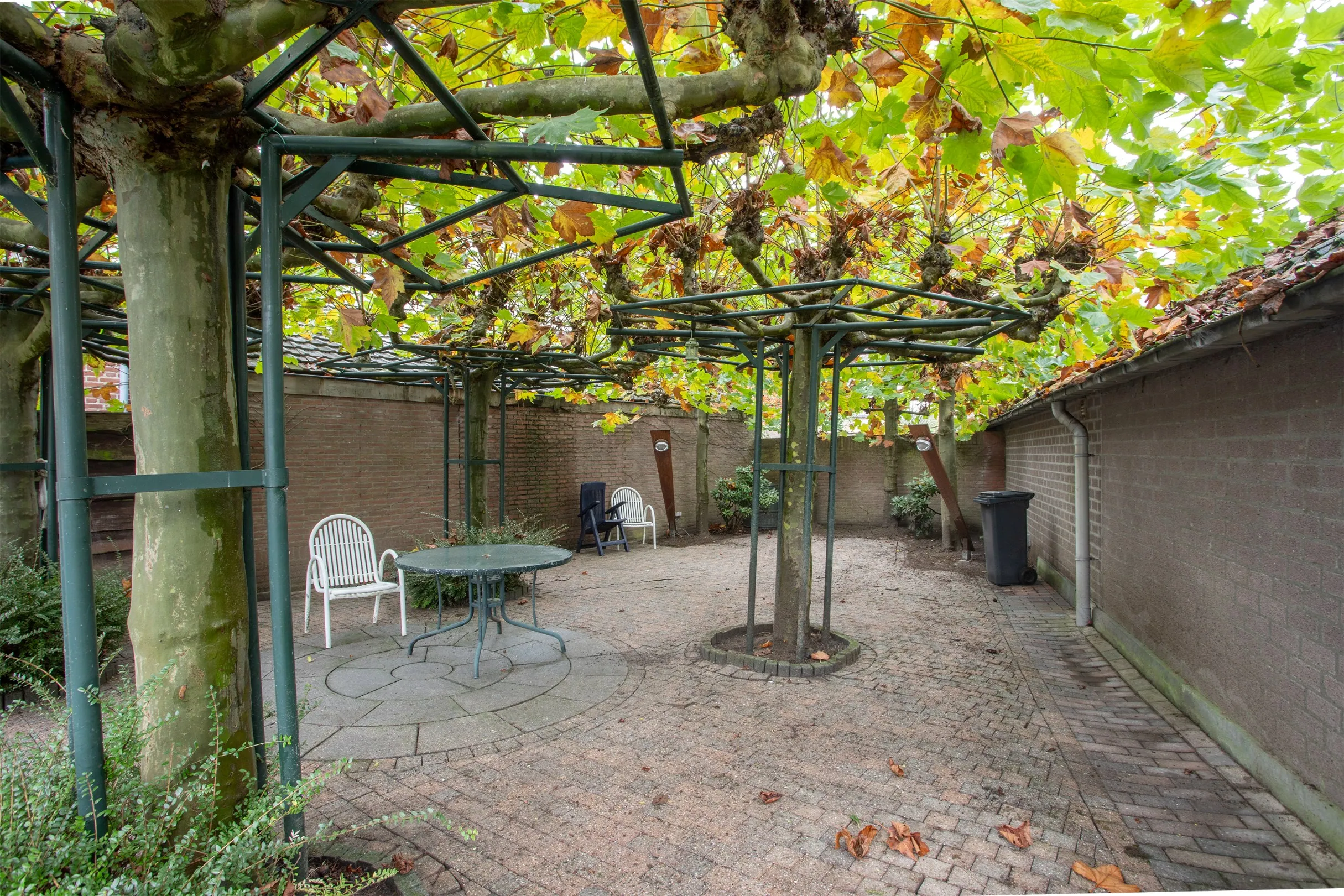 De woning heeft een brede, groene achtertuin met een gezellig zitgedeelte tussen volwassen bomen achter op het perceel. Verder biedt de tuin een vrije achterom en een ruim bijgebouw van circa 43 m², waarvan het dak aan vervanging toe is. De voortuin is natuurlijk aangelegd met vaste planten en graspartijen.
