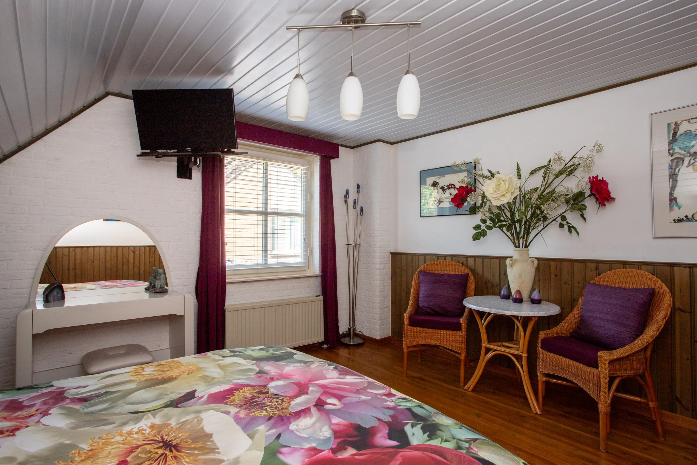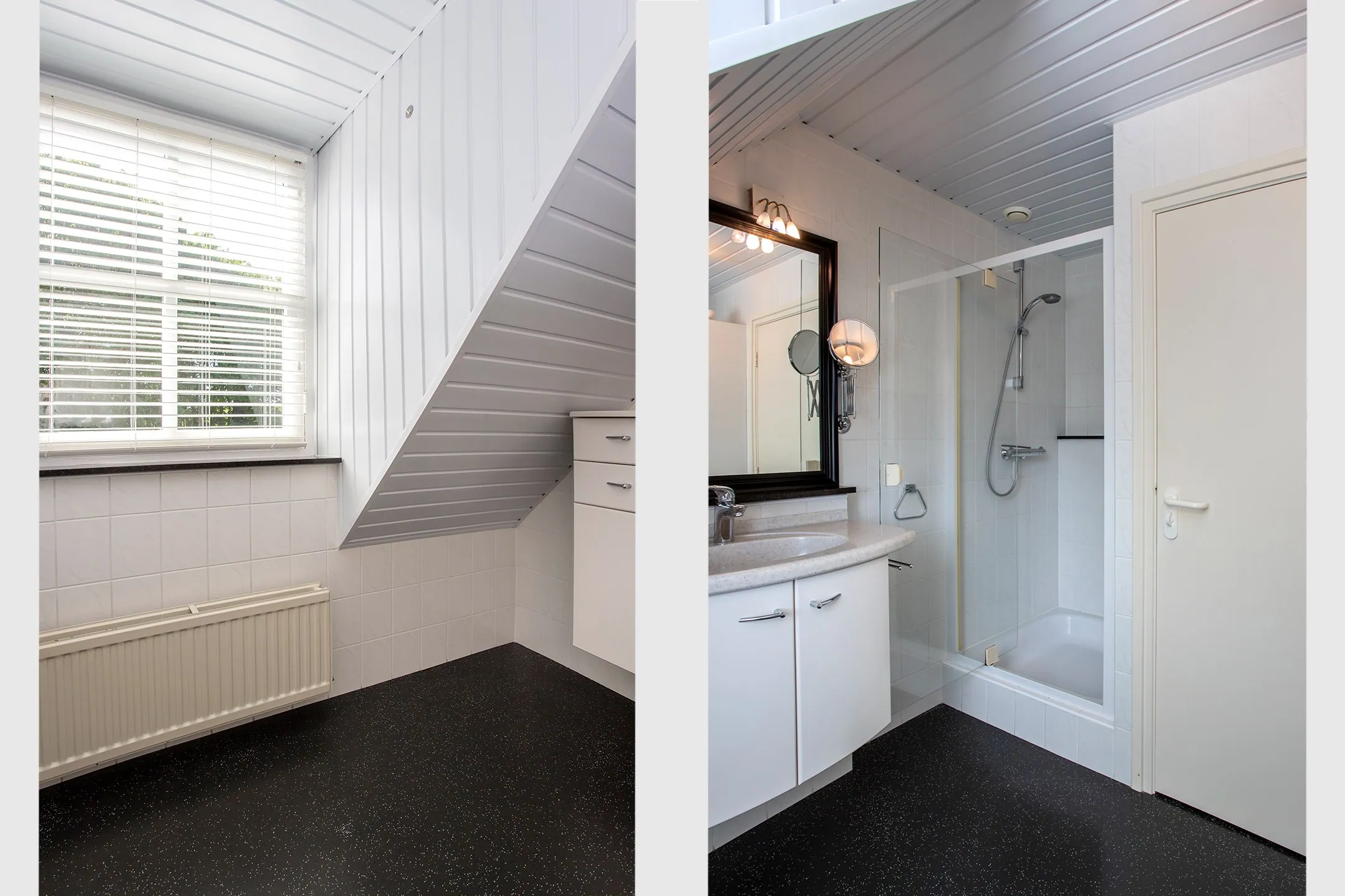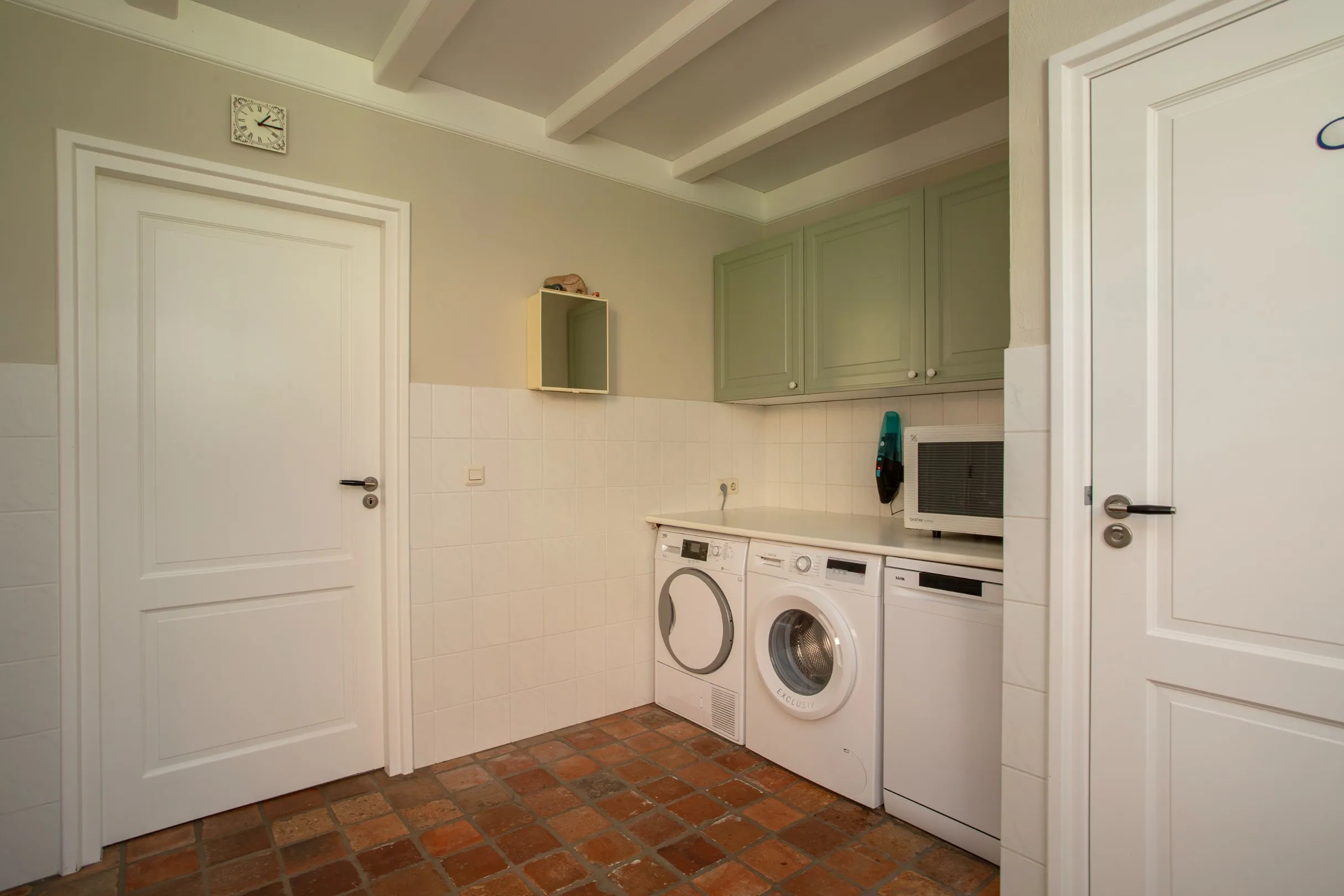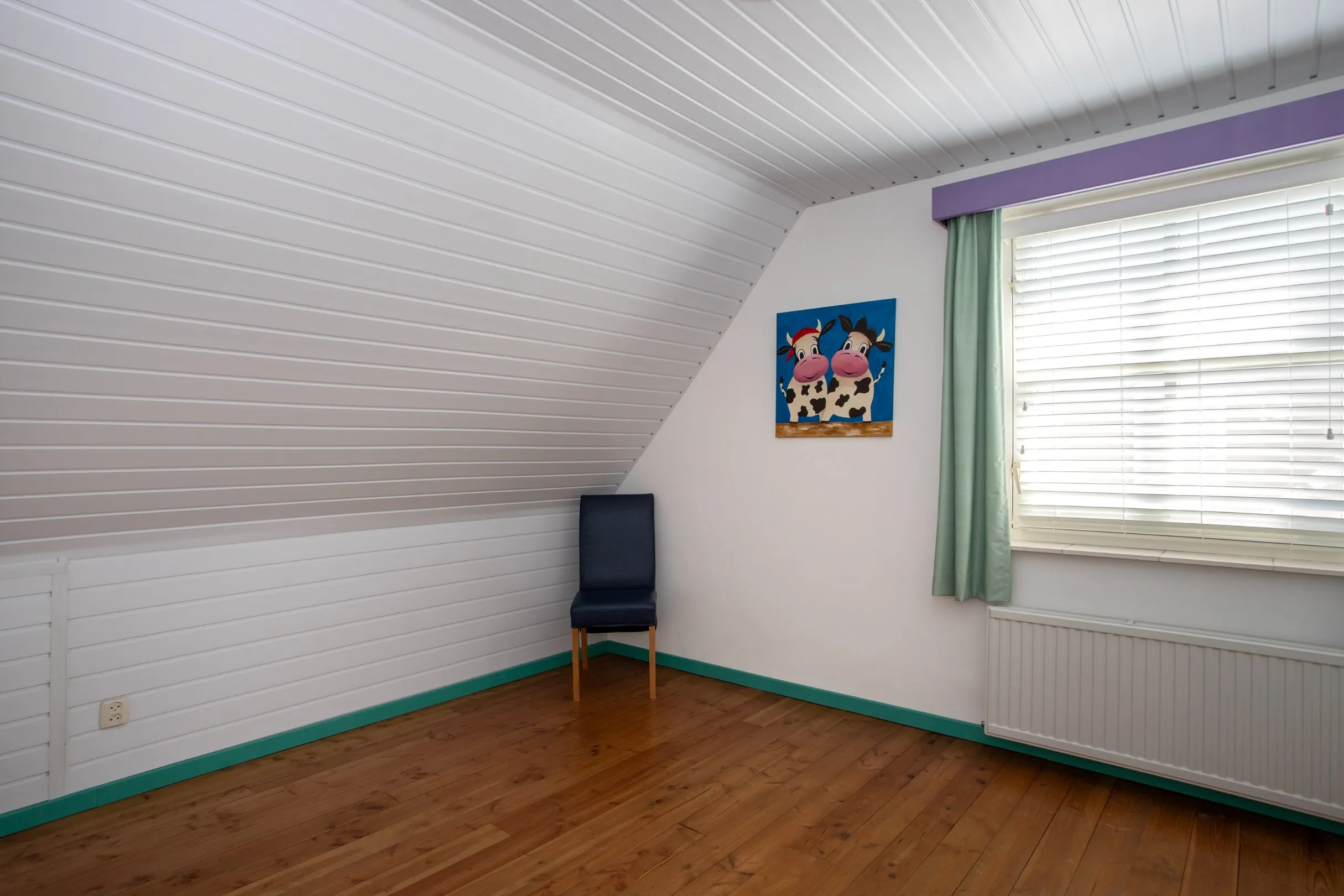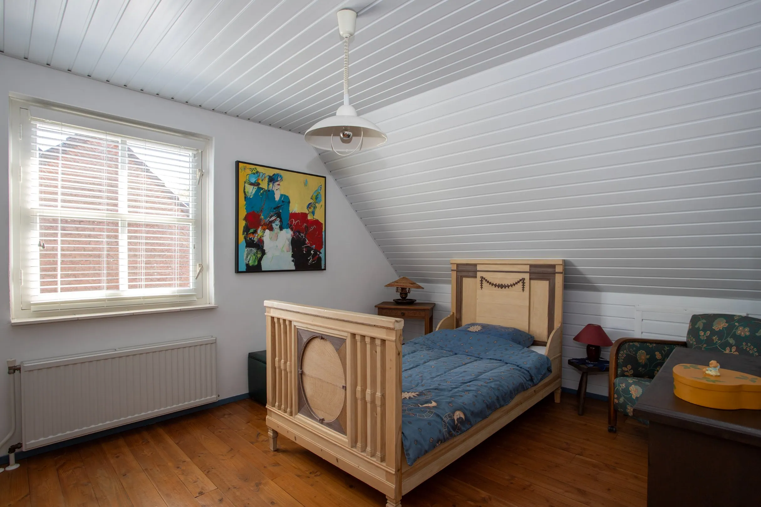 The former garage has been converted into a combination of office space (ideal for a home business, hobby room, or salon) and storage. This space can easily be restored to a full garage if desired. For those running a business from home, there’s a private entrance on the side, ensuring separation between work and personal life. The room also houses the new Remeha boiler (2025) and the underfloor heating pump.
