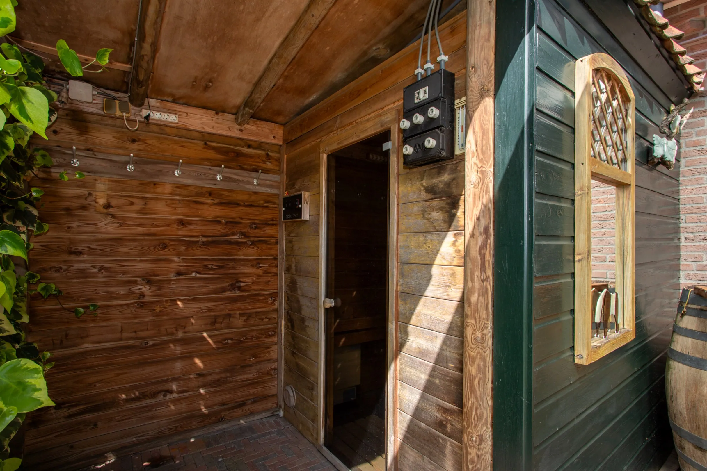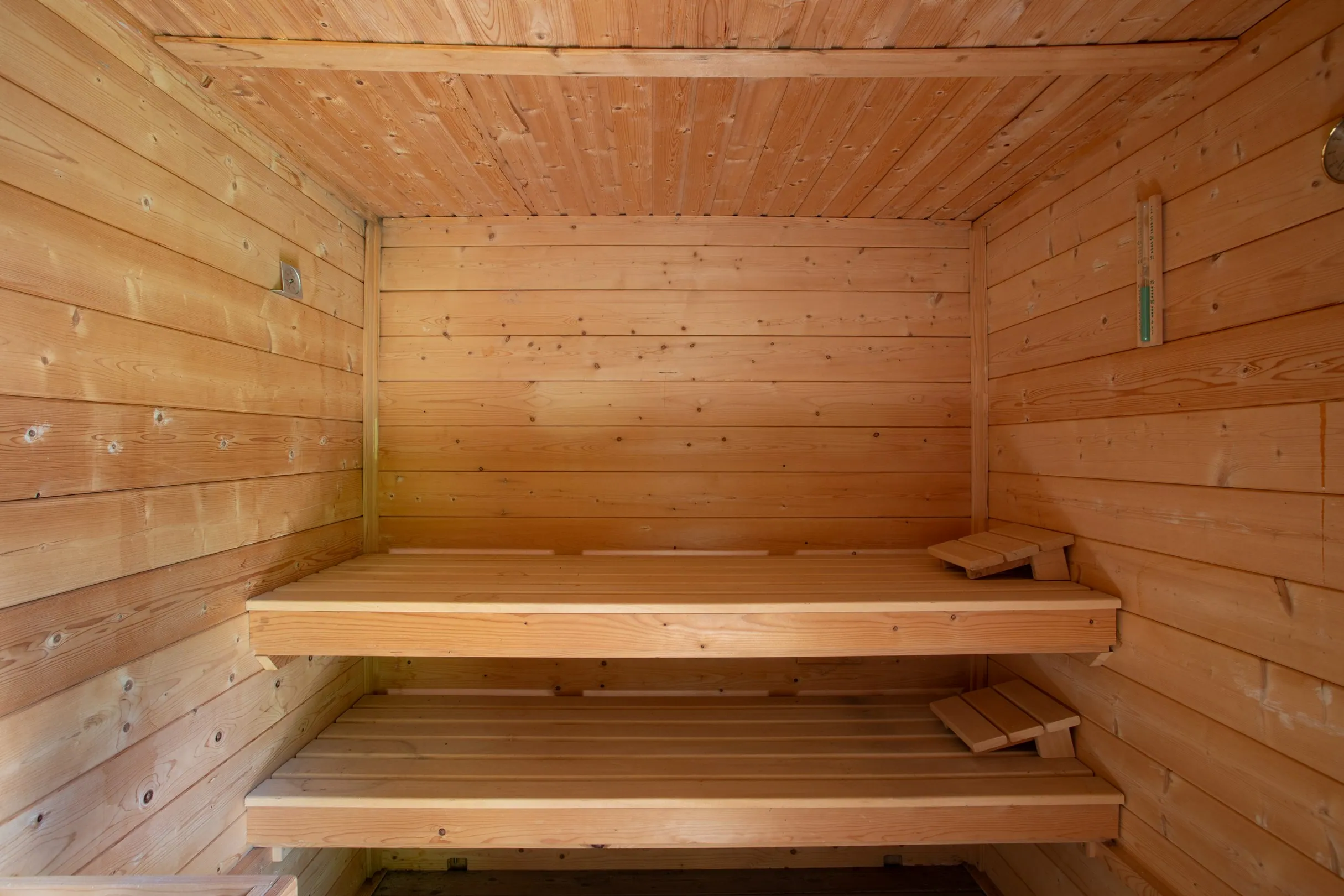 Sauna setup: a covered space with a large sauna, perfect for wellness enthusiasts