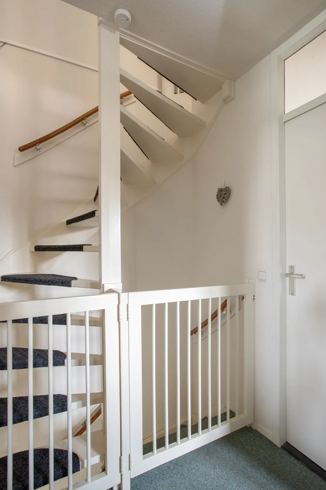 Vanuit de woonkamer is er een vaste trap naar de eerste verdieping. Onder deze trap bevindt zich een ruime, volledig betegelde trapkast met legplanken en verlichting.