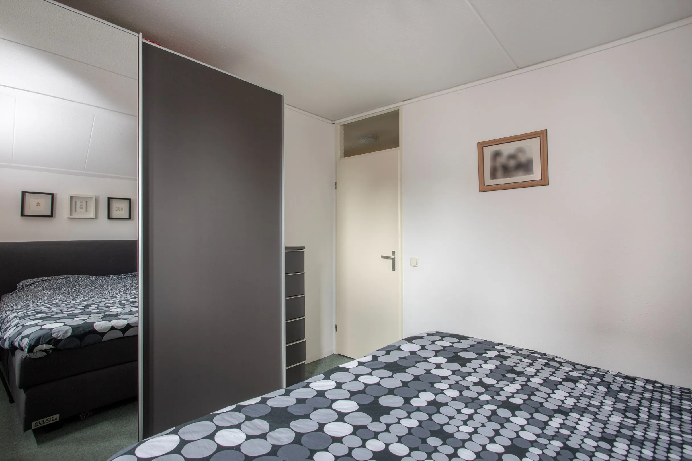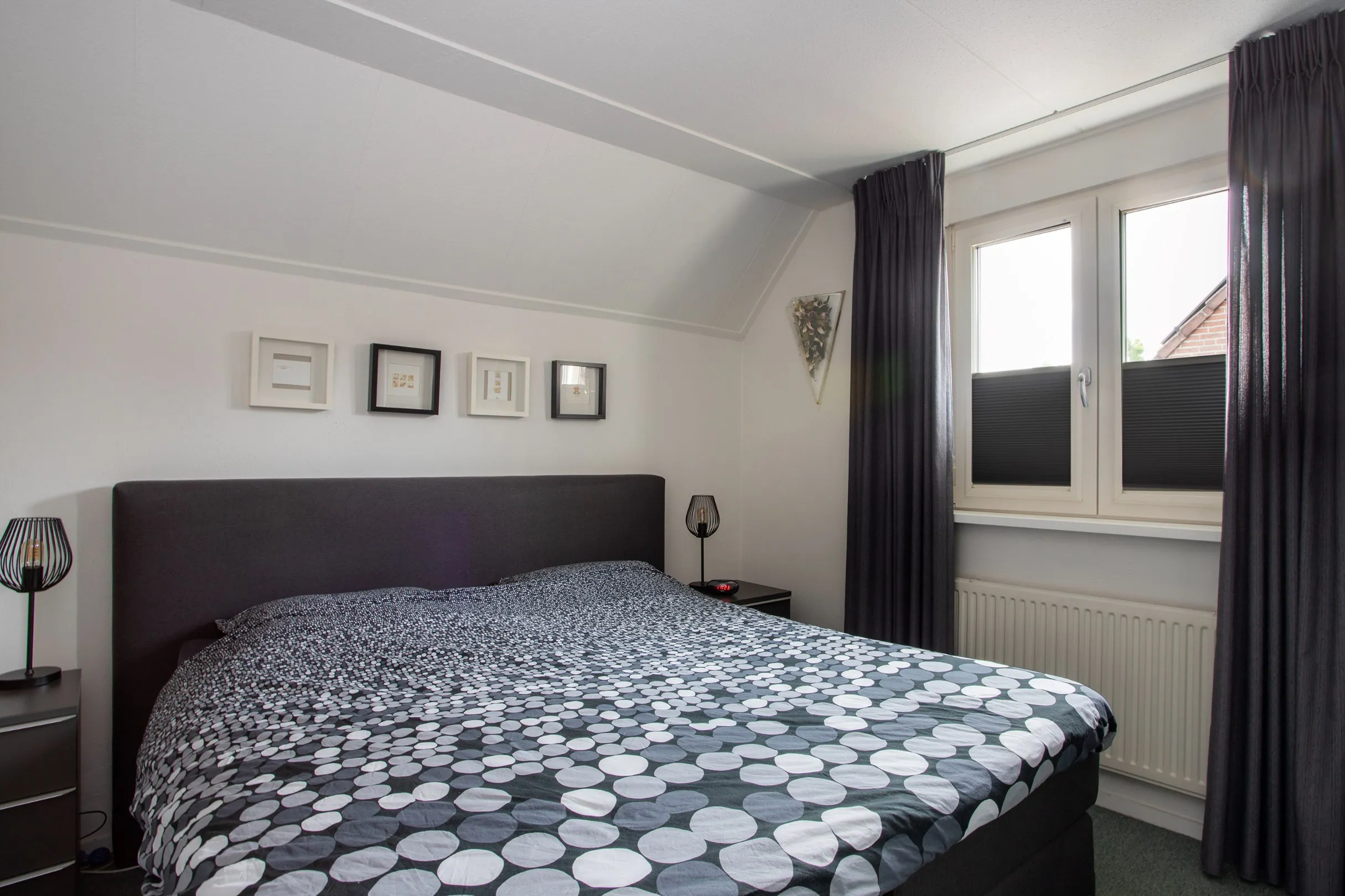 Op de eerste verdieping bevinden zich drie verzorgde slaapkamers, waarvan twee opvallend ruim. Alle slaapkamers zijn uitgerust met kunststof kozijnen met HR++-beglazing en elektrische rolluiken. De wanden en plafonds zijn voorzien van spuitwerk en de verdieping heeft een betonnen vloer.