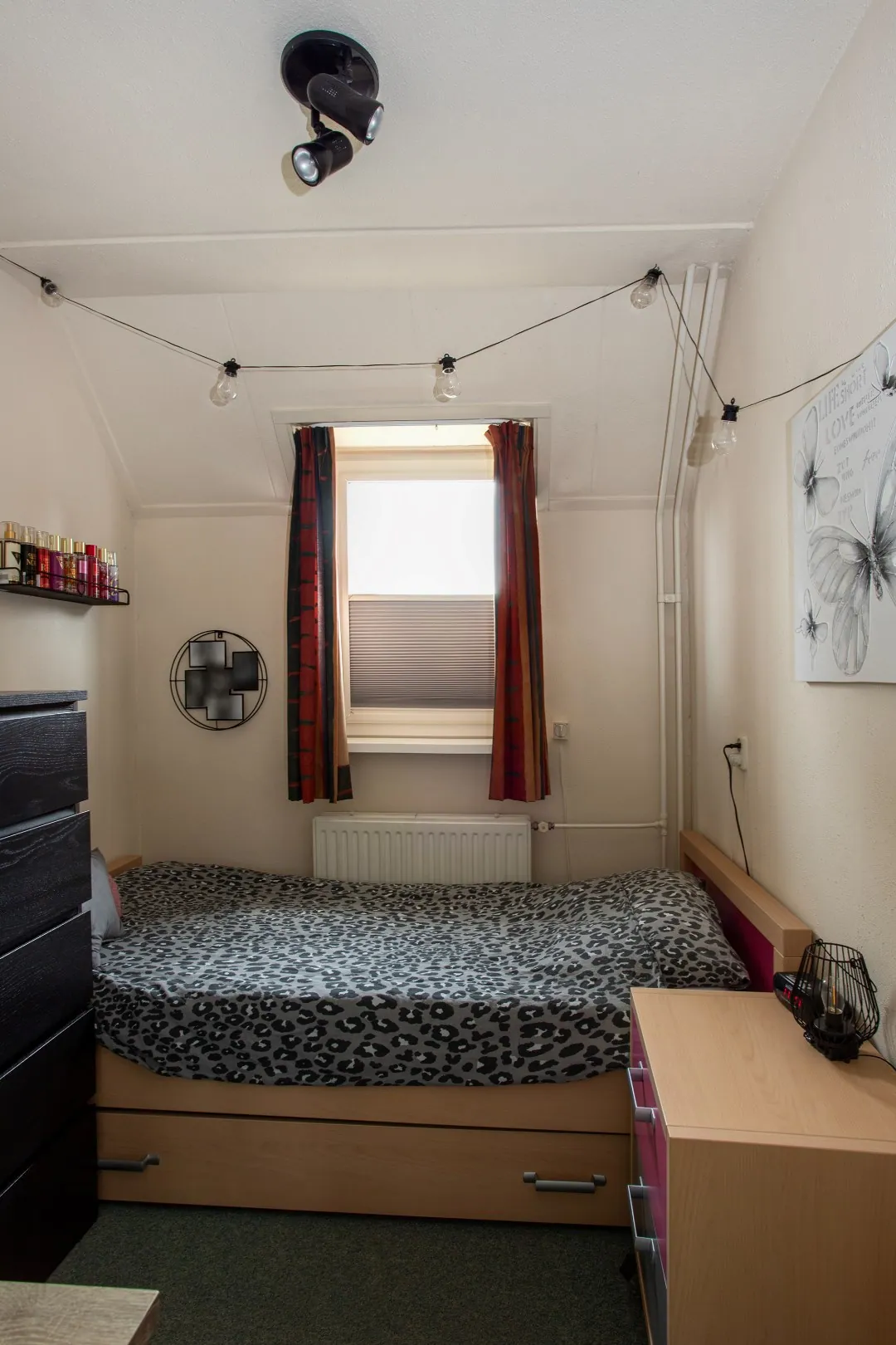 De tweede verdieping is bereikbaar via een vaste trap en heeft eveneens een betonnen vloer. Op de voorzolder bevindt zich de CV-installatie (Nefit, 2020). De vierde slaapkamer beschikt aan de voorzijde over een dakkapel met rolluik en aan de achterzijde over een Velux-dakraam. De gehele zolder is voorzien van een laminaatvloer. Onder de schuine dakdelen is extra bergruimte aanwezig.