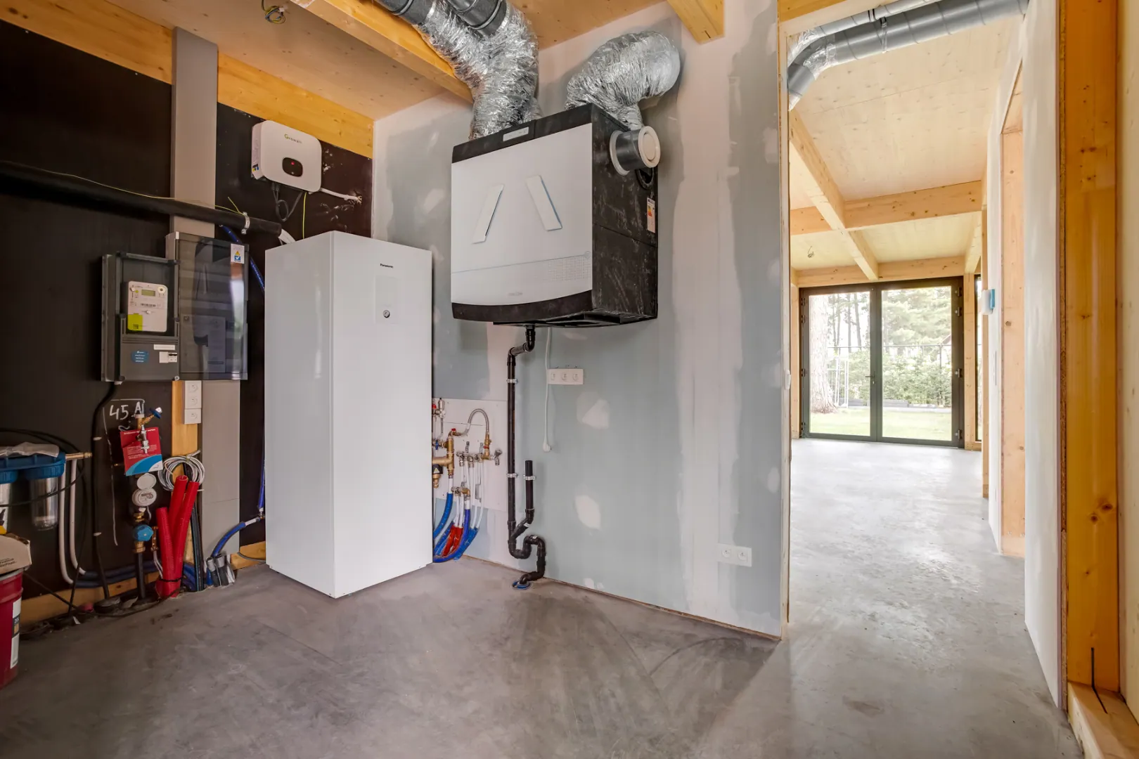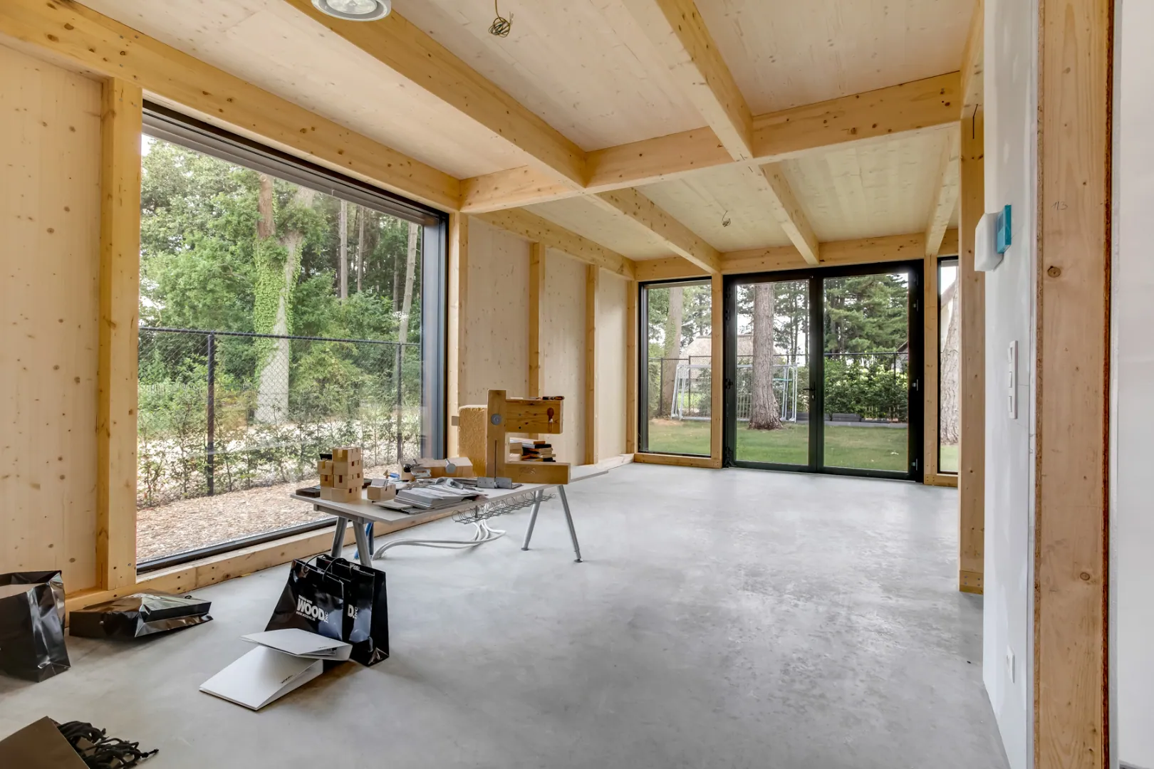 Het gelijkvloers is voorzien van een betonnen gepolierde gietvloer waarin de vloerverwarming verwerkt is.