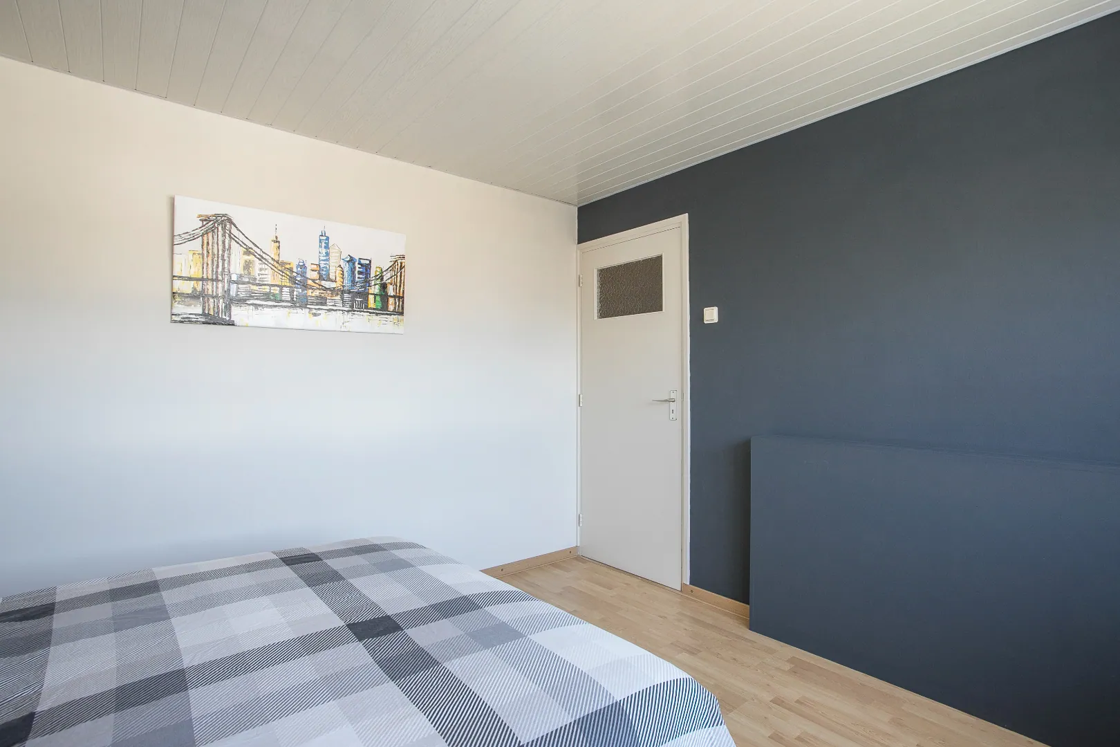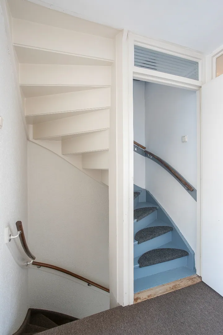 Grote zolderverdieping welke prima dienst kan doen als thuiswerkplek, hobbyruimte of simpelweg als riante slaapkamer. Een dakraam en dakkapel zorgen voor de nodige lichtinval, er ligt een tapijtvloer en onder de schuinte van de kap is er veel opbergruimte. In een van de vaste kasten is de Cv installatie gesitueerd (Remeha Calenta 2018).