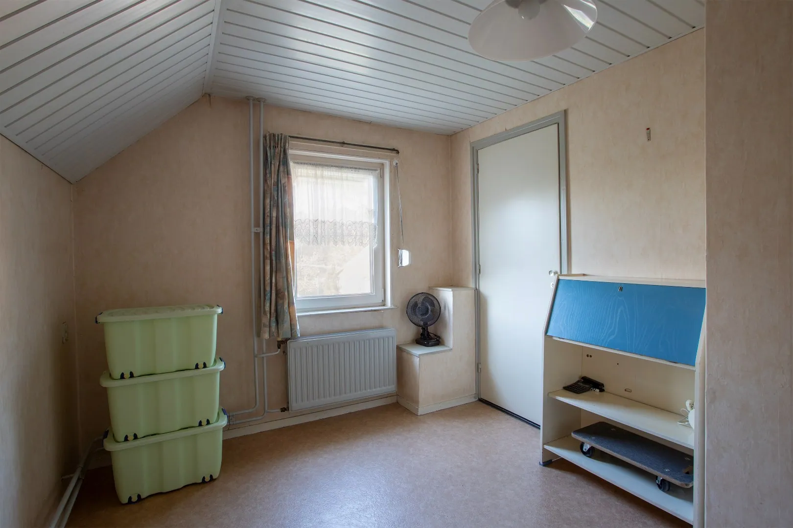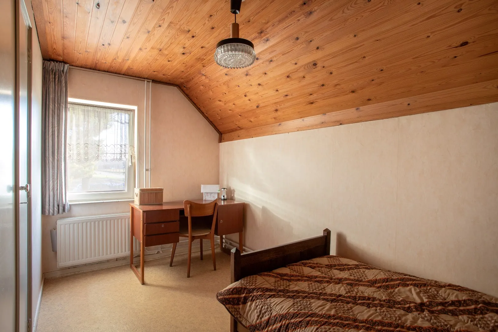 De 5e (slaap)kamer heeft een dakraam in de dakschuinte. Deze kamer zou ook kunnen dienen als doorgang naar de verdieping boven de bijkeuken, zodat die verdieping bij de bovenruimte van de woning getrokken gaat worden. Ook hier hebben de kamers op de zonzijde rolluiken.