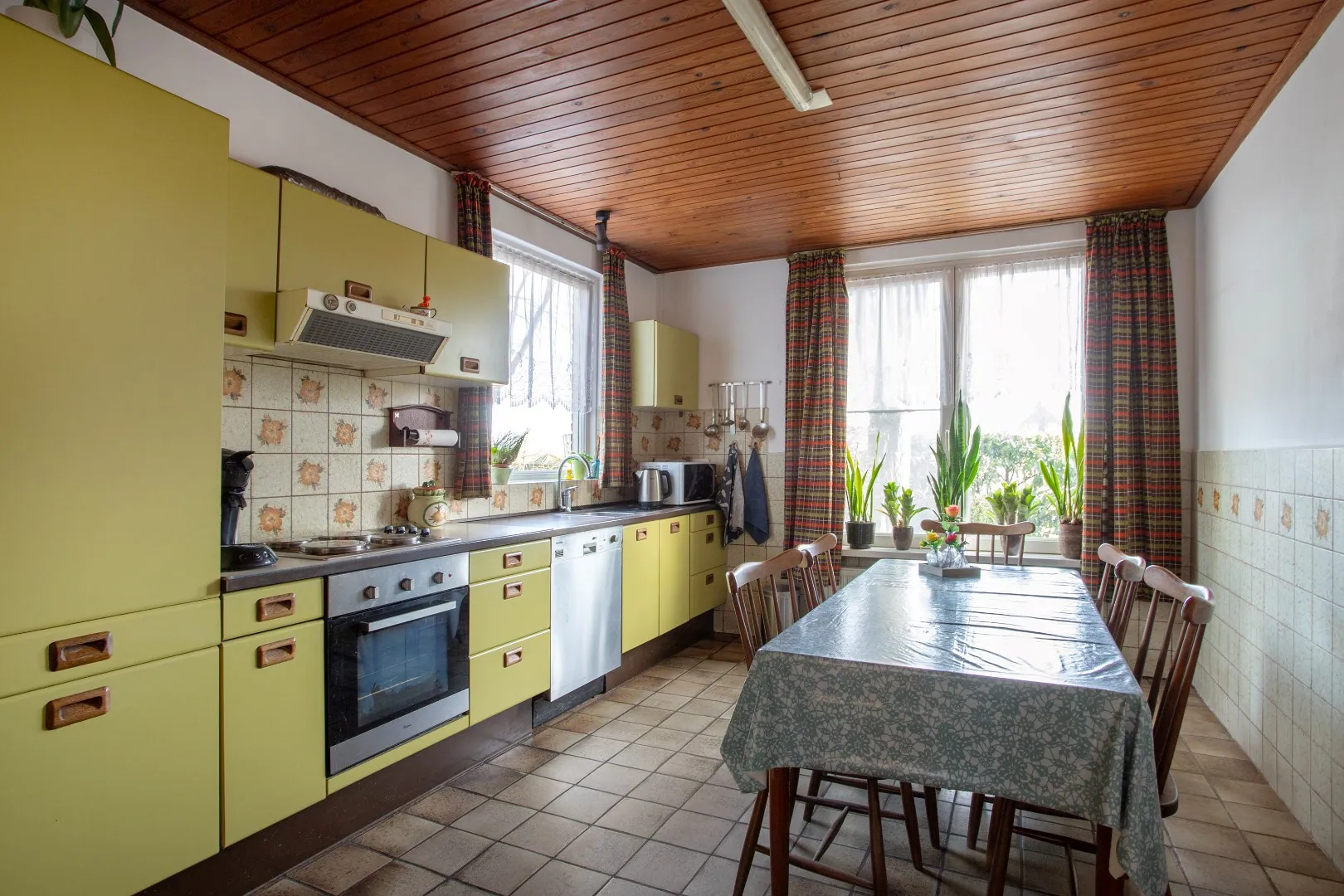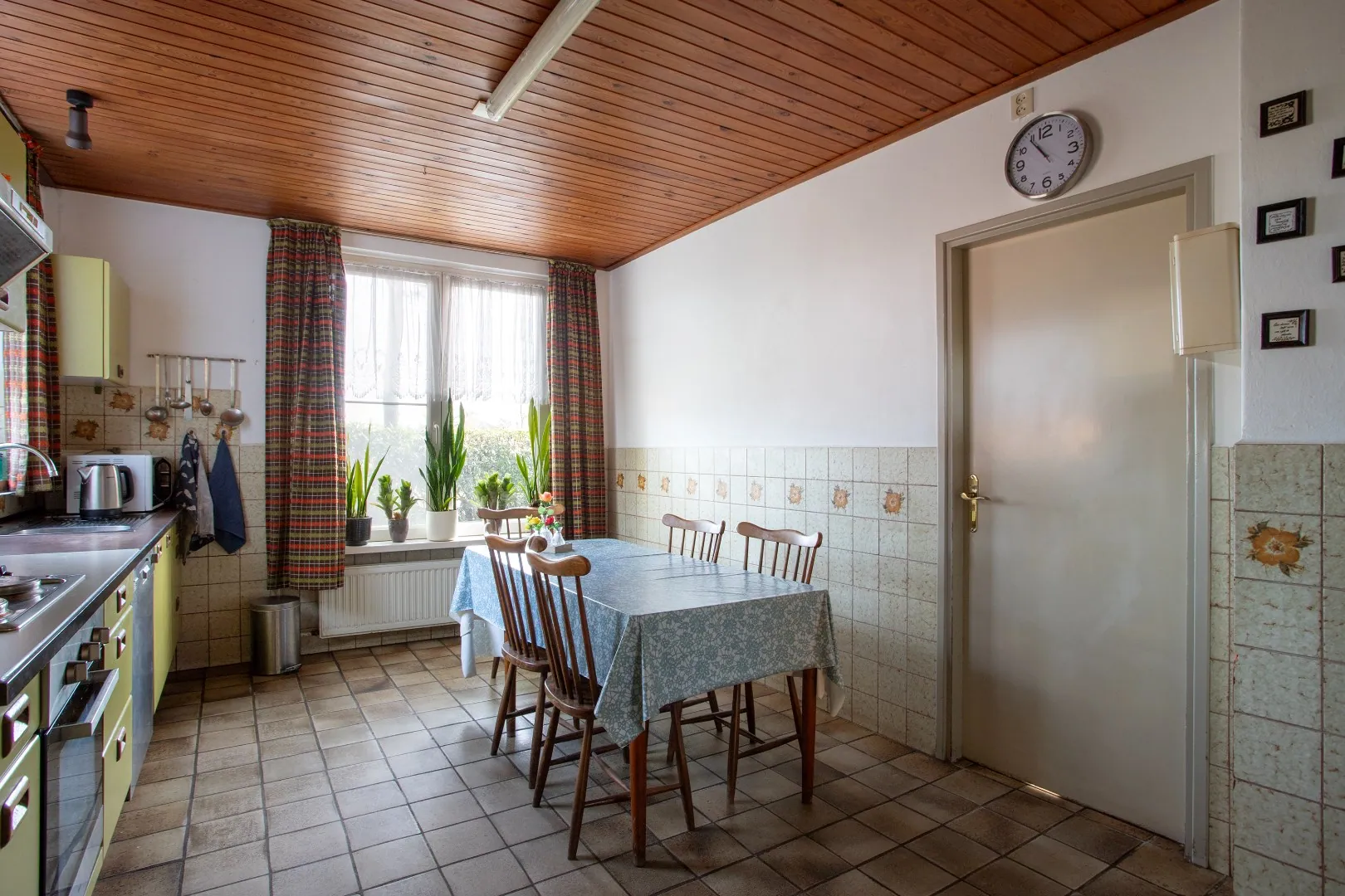 Via de entree aan de voorkant kom je in de hal, waar ook de meterkast (9 groepen en kookgroep) aanwezig is. Van hieruit kun je door naar de woonkamer. Deze is L-vormig, royaal en voorzien van flink wat lichtinval. Aan de zonzijde zijn rolluiken of screens aanwezig. Je loopt door naar de leefkeuken, van waaruit je toegang hebt tot de verdiepte kelder. Over de lange kant staat de keukenopstelling en vanuit de keuken heb je zicht op de weg en weilanden. Aansluitend is een extra kamer beschikbaar. Een mooie lichte ruimte voor een hobby, of als speelkamer of thuiswerkplek/kantoor.