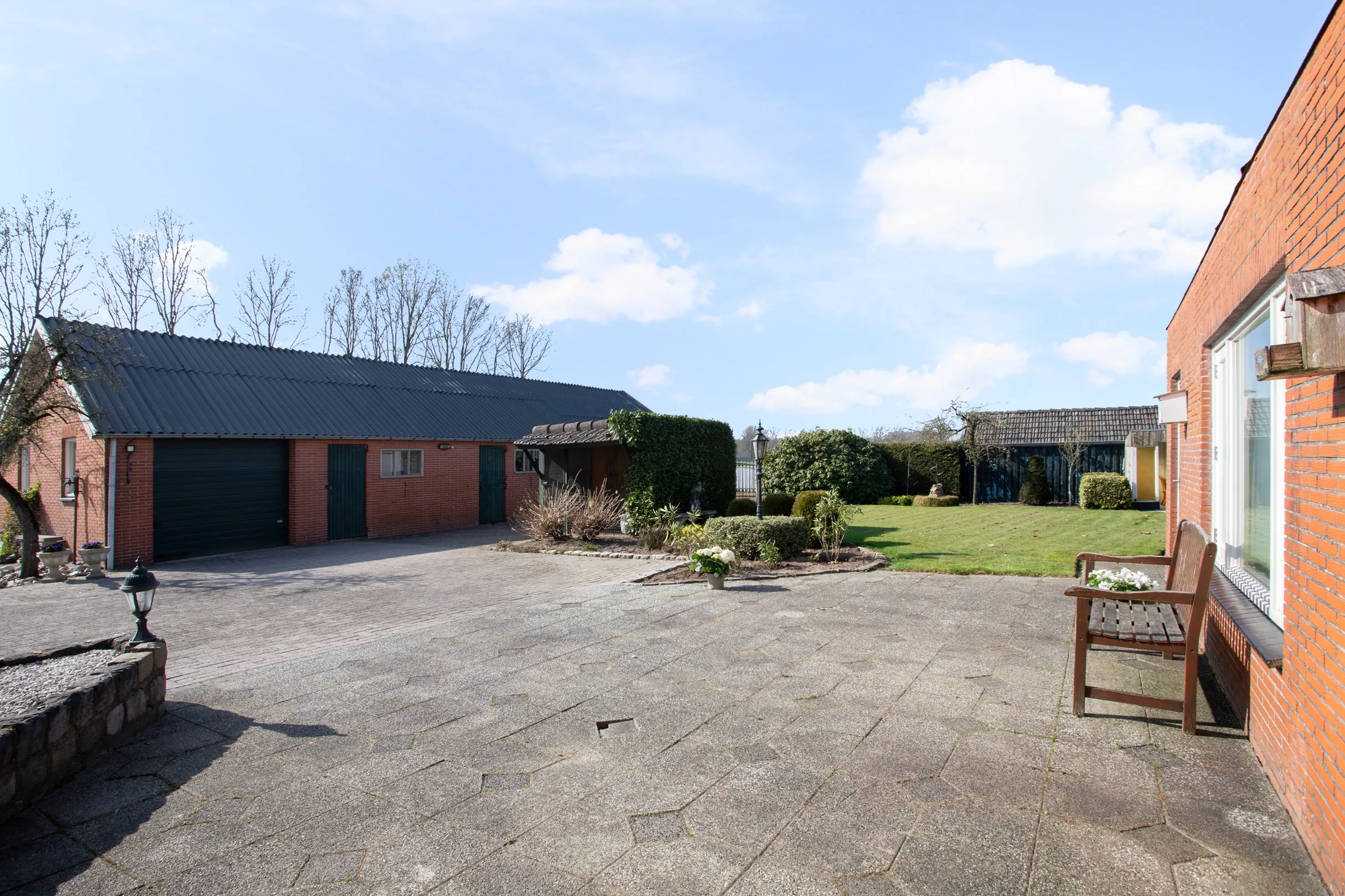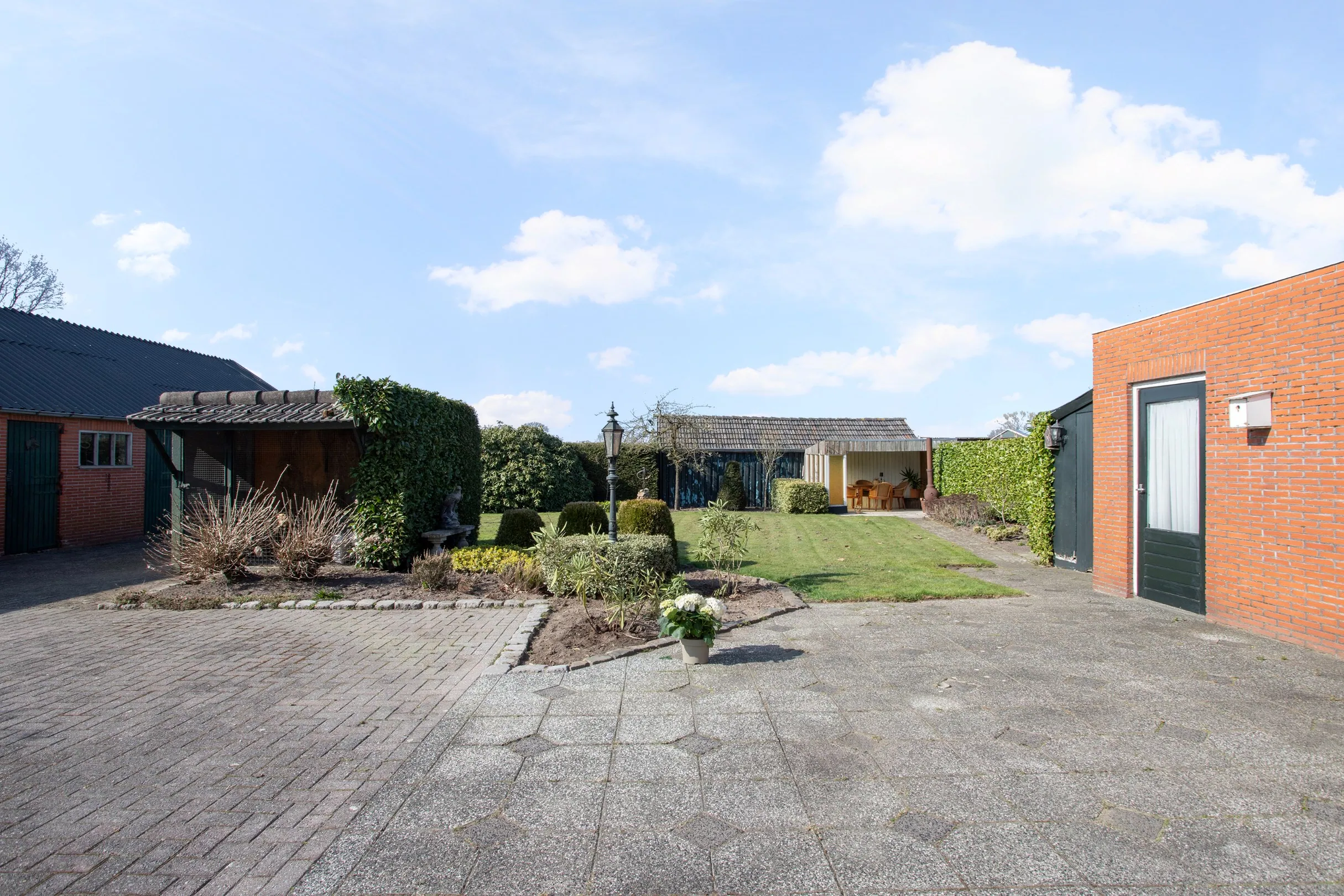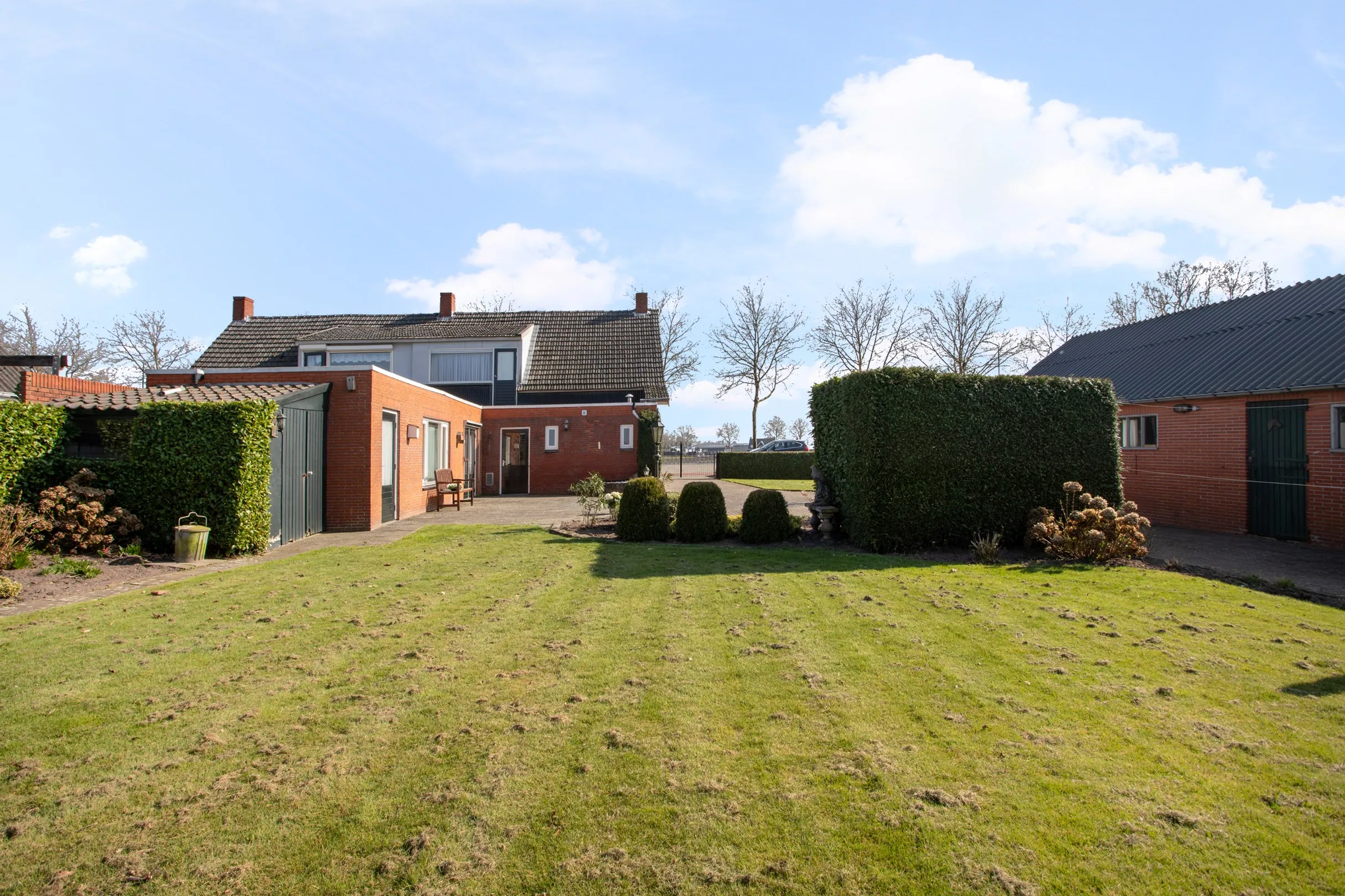 In de royale tuin zijn meerdere bijgebouwen. Achter de mantelzorgwoning is een berging voor tuingereedschap en kliko’s, Verder is er een prieeltje en hondenhok aanwezig, maar de meesten geïnteresseerden zullen enthousiast worden van de schuur van maar liefst ruim 100 m² groot. Deze is opgetrokken in spouw en voorzien van (geen asbest) golfplaten. Met twee paardenboxen, meerder ingangen is deze schuur per compartiment voor verschillende doelen te gebruiken.