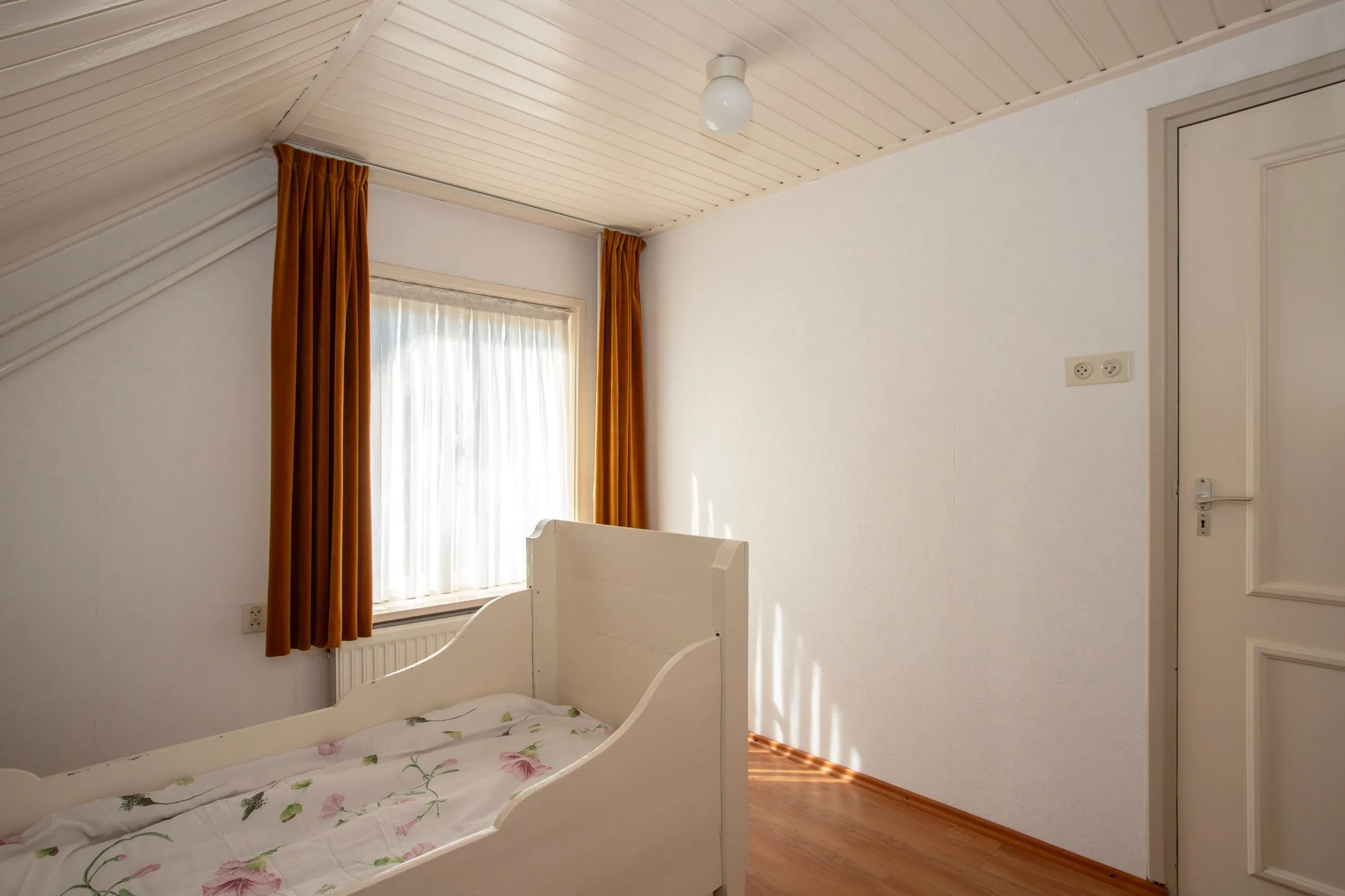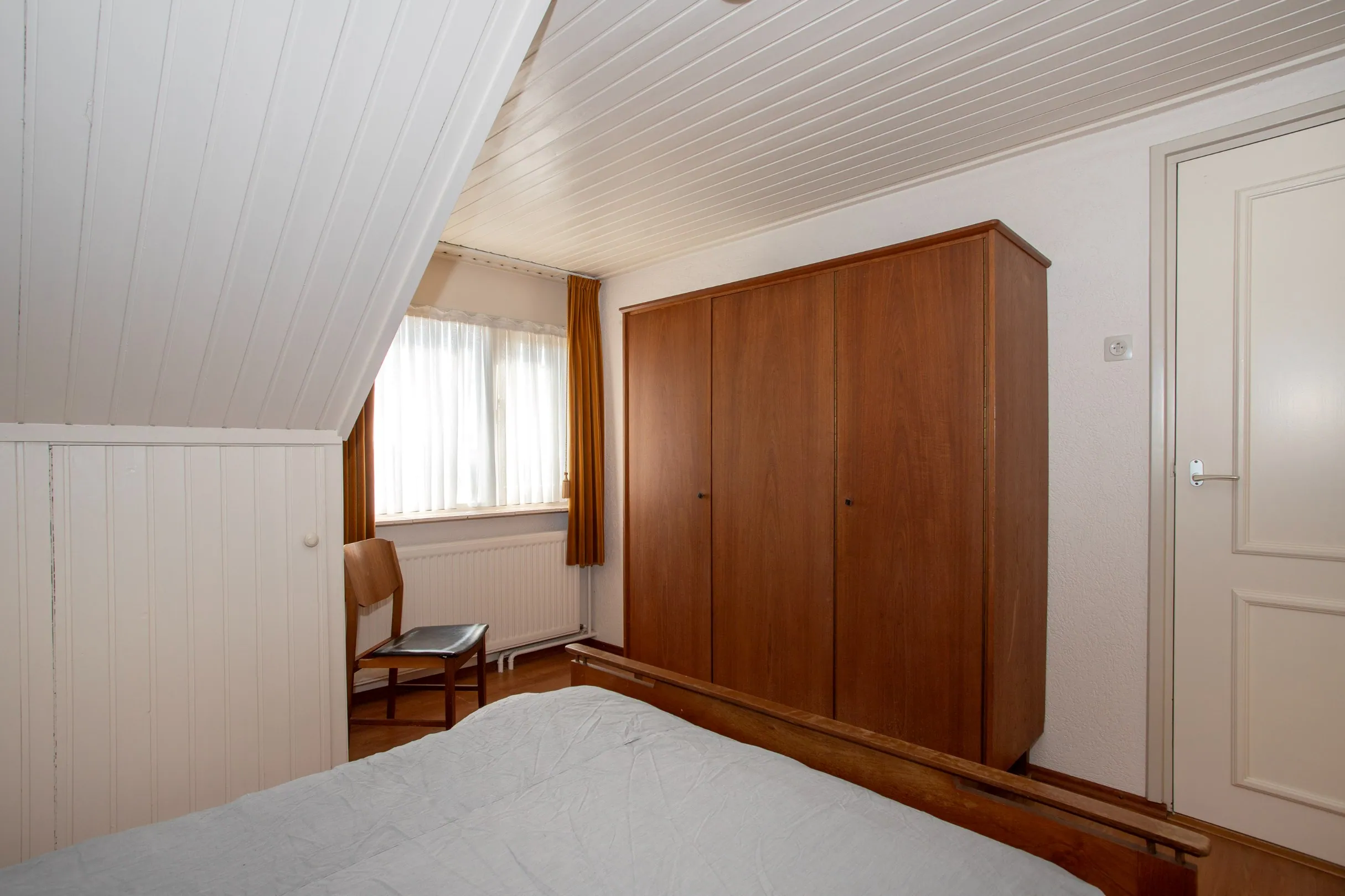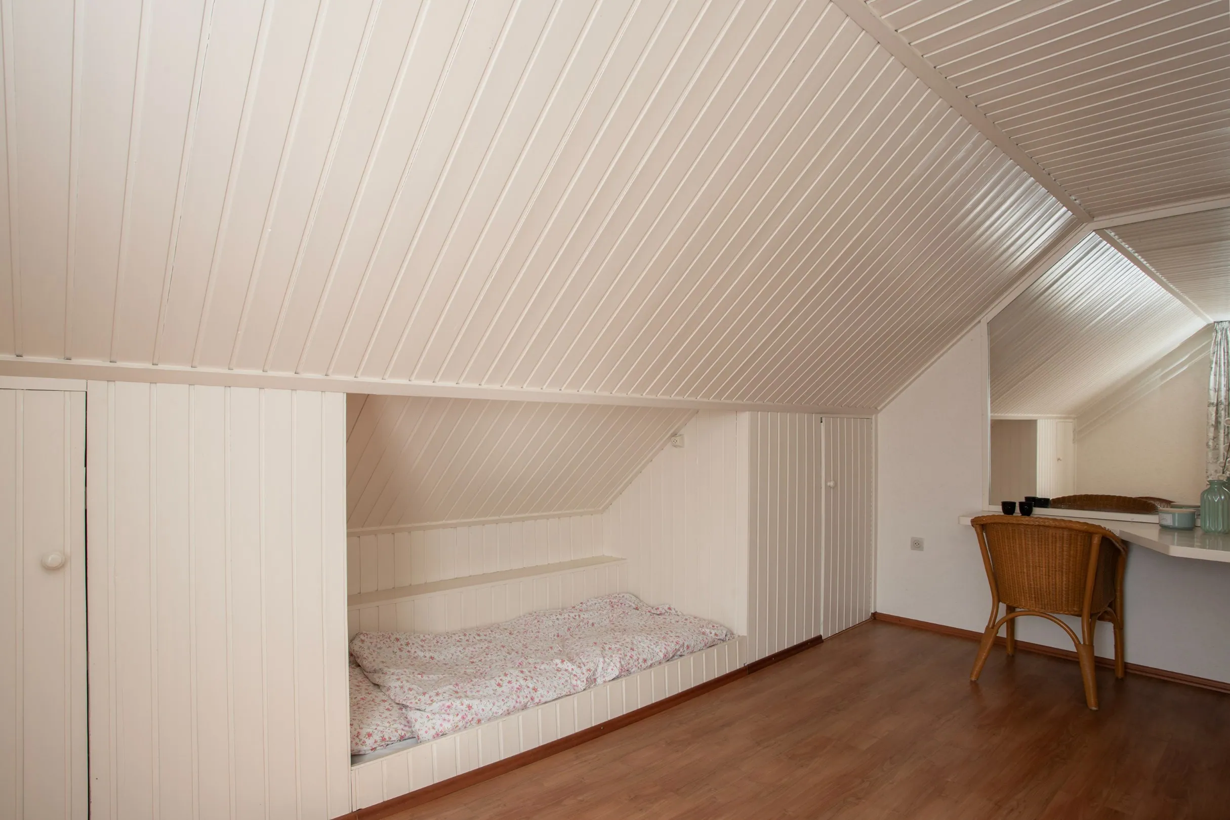 Vanuit de overloop heb je toegang tot de 4 slaapkamers en de badkamer. De slaapkamers verschillen van afmeting, maar hebben met dezelfde afwerking. Meerdere kamers hebben bergruimte onder de dakschuinte.
