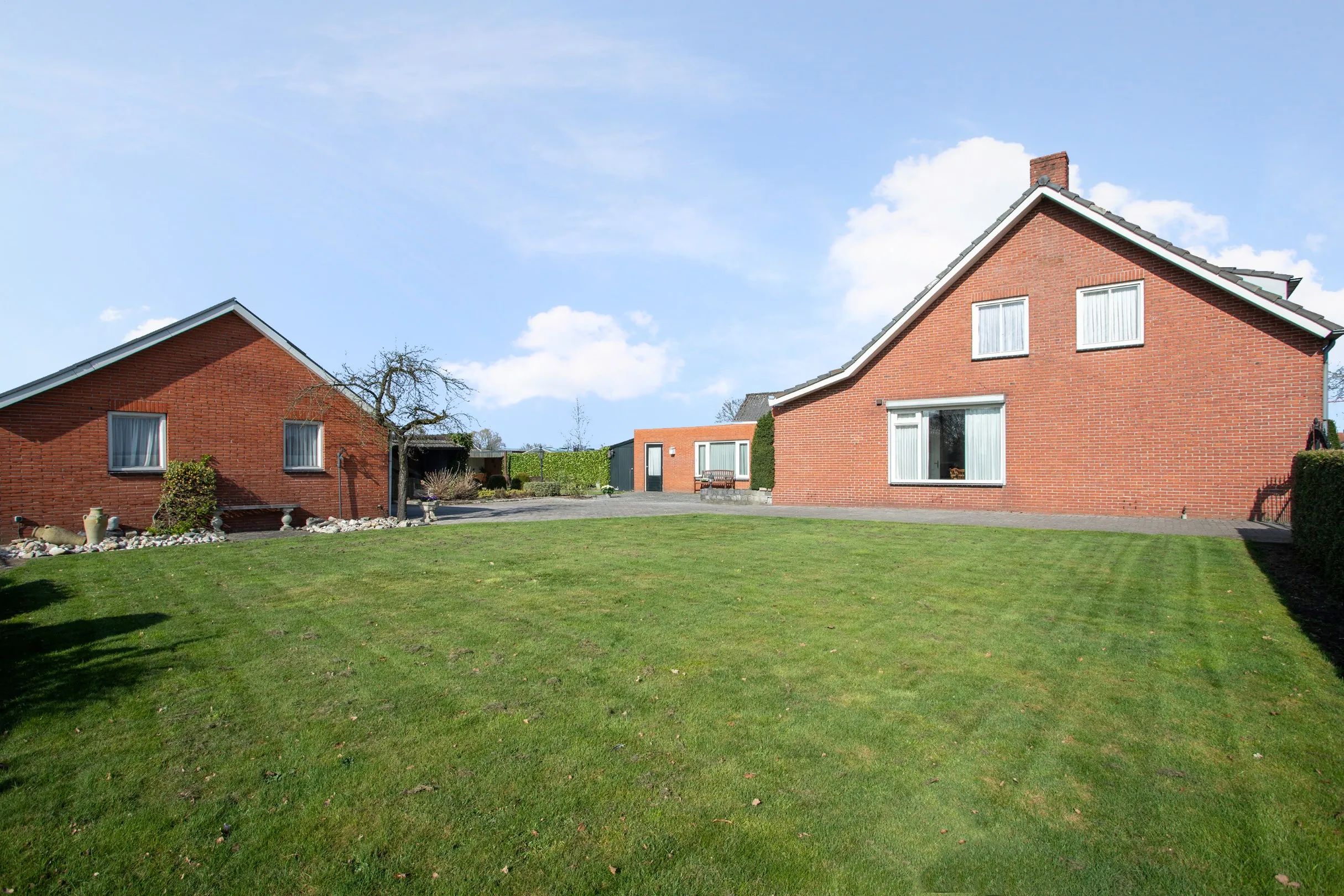 Deze royale woning staat op een perceel van ca. 1.100 m² en ligt in het buitengebied en toch ook tegen het centrum, oftewel voorzieningen op loopafstand. Naast de woning is er een mantelzorg woning aanwezig en is er een grote schuur van ruim 100 m² vloeroppervlakte aanwezig. In deze schuur zijn twee paardenboxen aanwezig en veel bergruimte verdeeld over meerder separate ingangen. Het uitzicht aan de achterkant over de landerijen is weids en erg ruimtelijk.