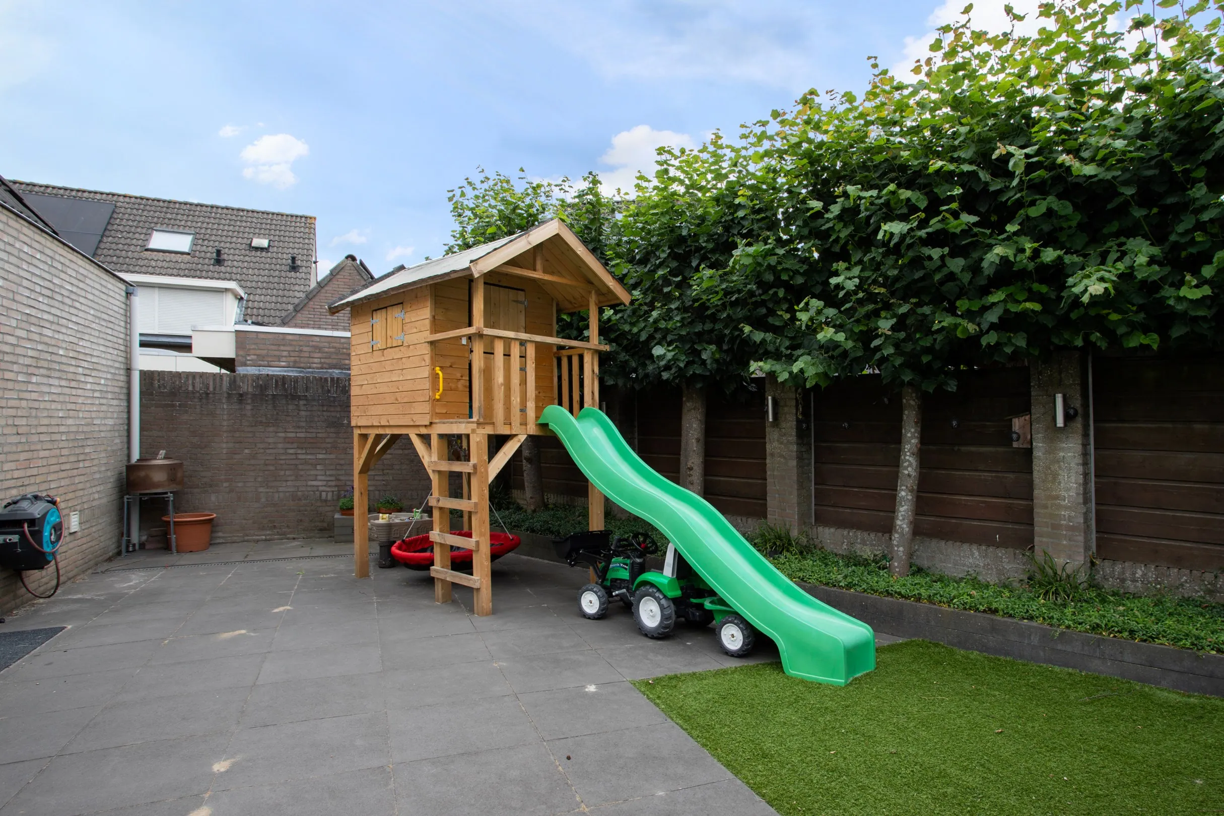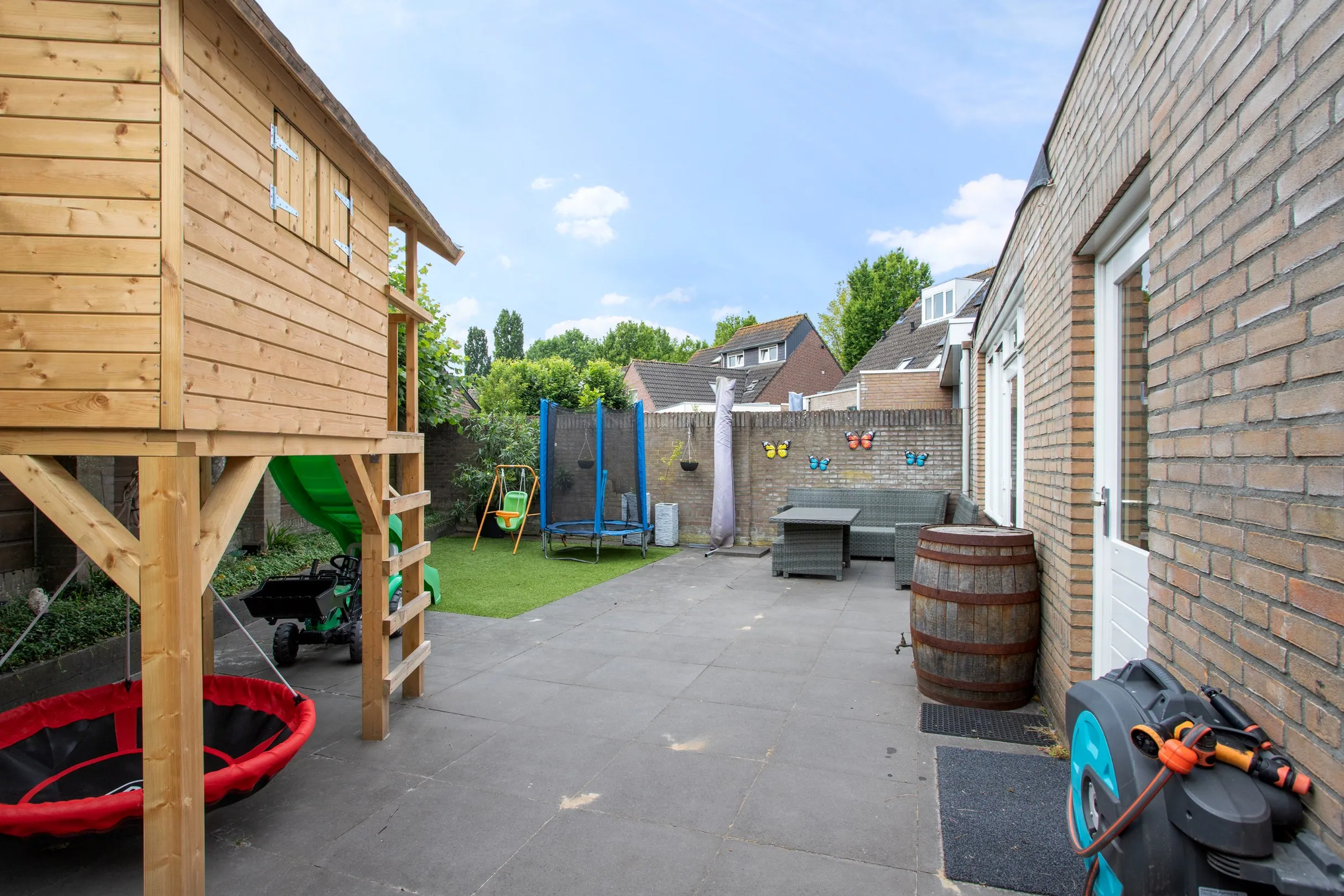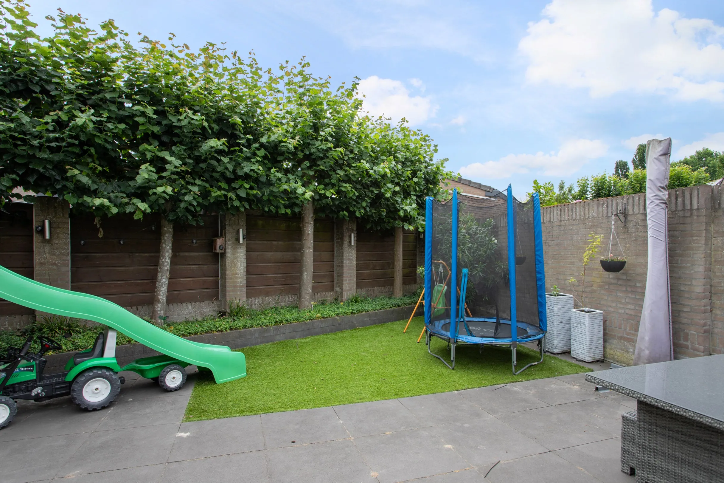 Aan de voorzijde is er een ruime oprit voor eigen parkeergelegenheid. De achtertuin is zonnig, onderhoudsvriendelijk en biedt veel privacy. Met mooie tegels, een stukje (kunst)gras, leibomen zit je hier altijd goed in de zomer.