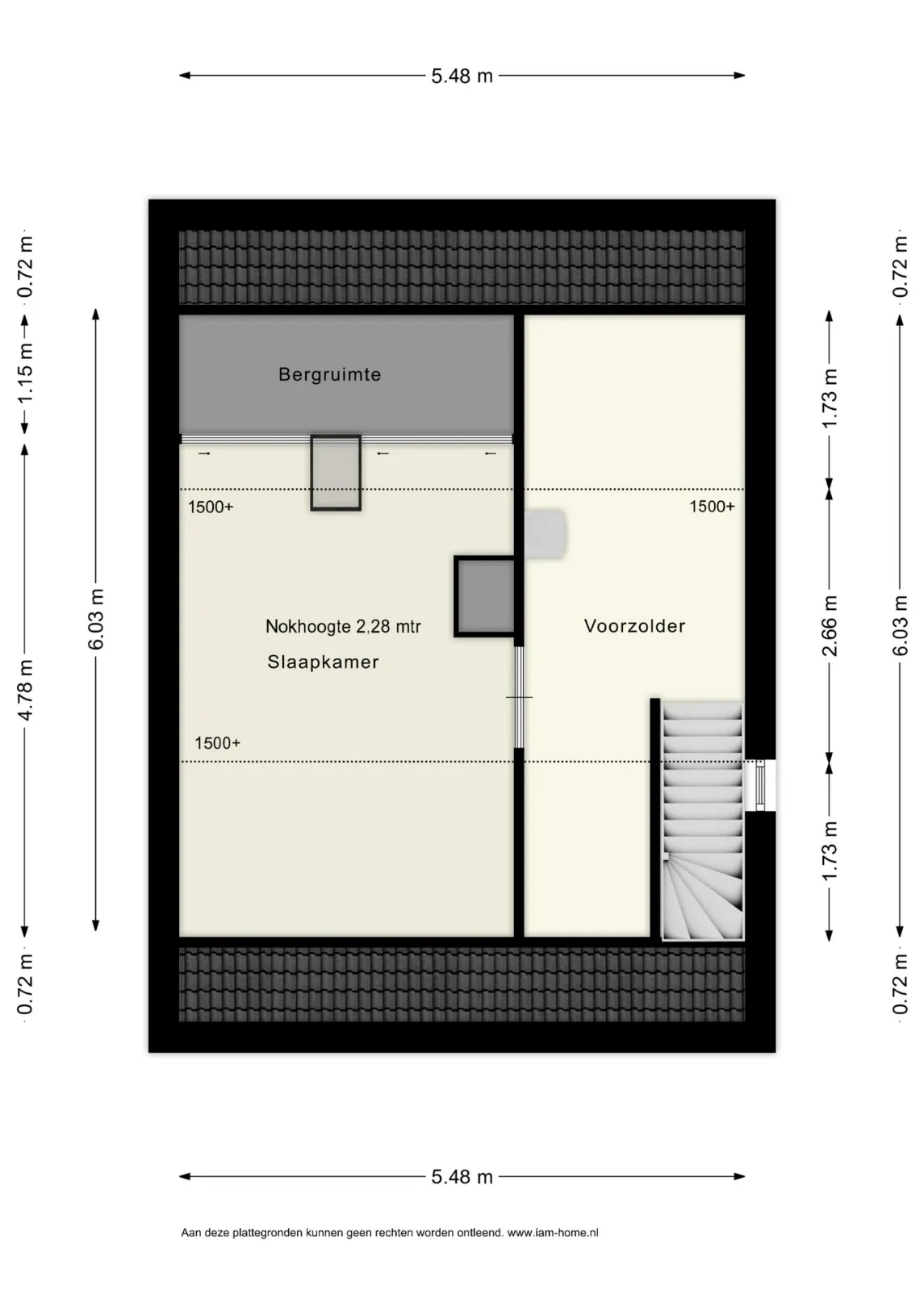 Via een vaste trap bereikt u de zolderverdieping. Hier bevindt zich eerst een praktische bergzolder met de opstelling van de cv-installatie. Aansluitend is er een derde slaapkamer met dakraam en extra opbergruimte.