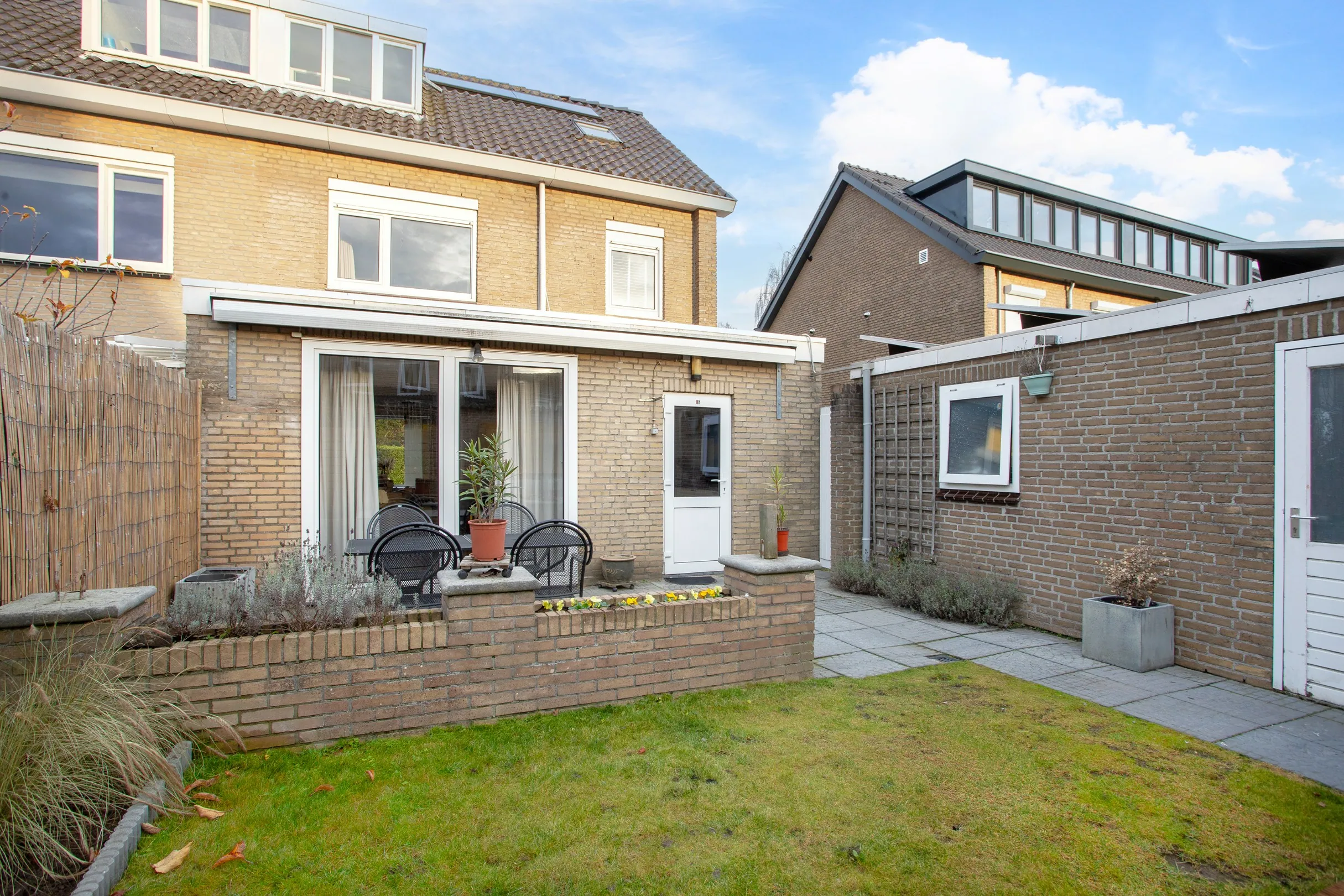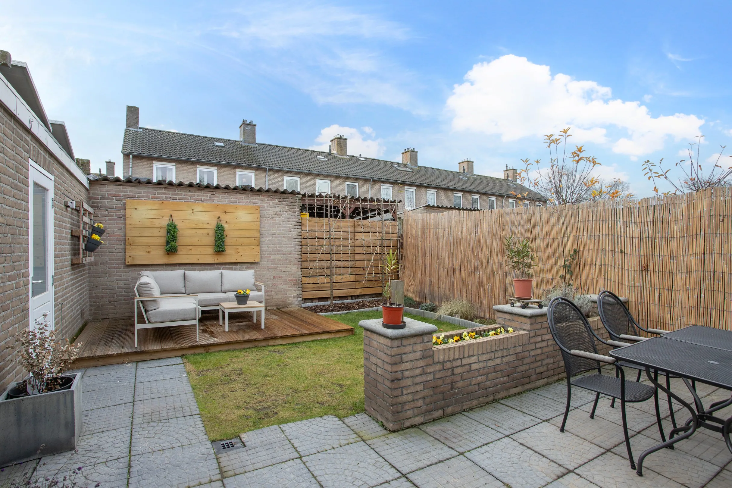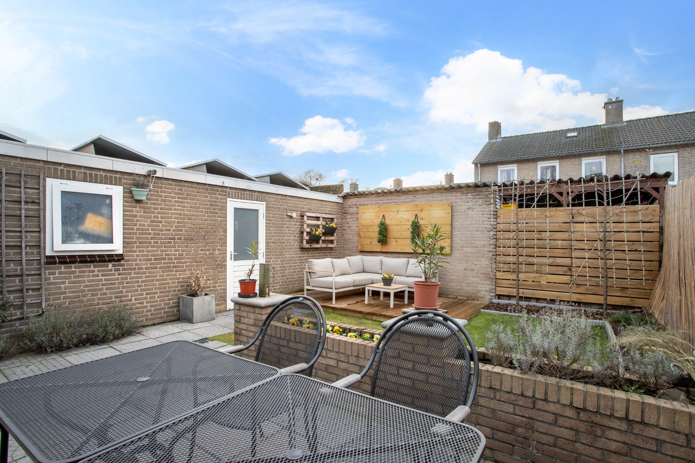 * Zonnige, onderhoudsvrije nieuw aangelegde achtertuin op het zuiden