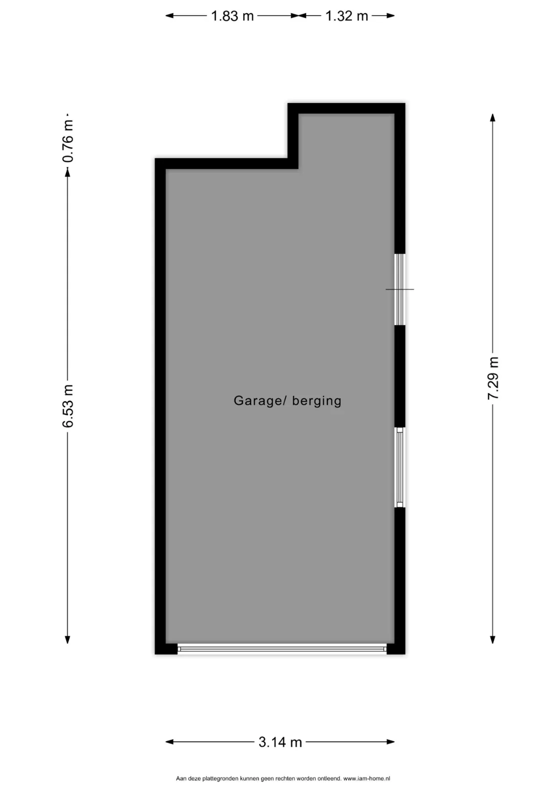 Aan de zijkant is er een poort naar de achtertuin en aan de achterkant bevindt zich toegang tot de ruime garage met elektriciteit en elektrische kanteldeur.