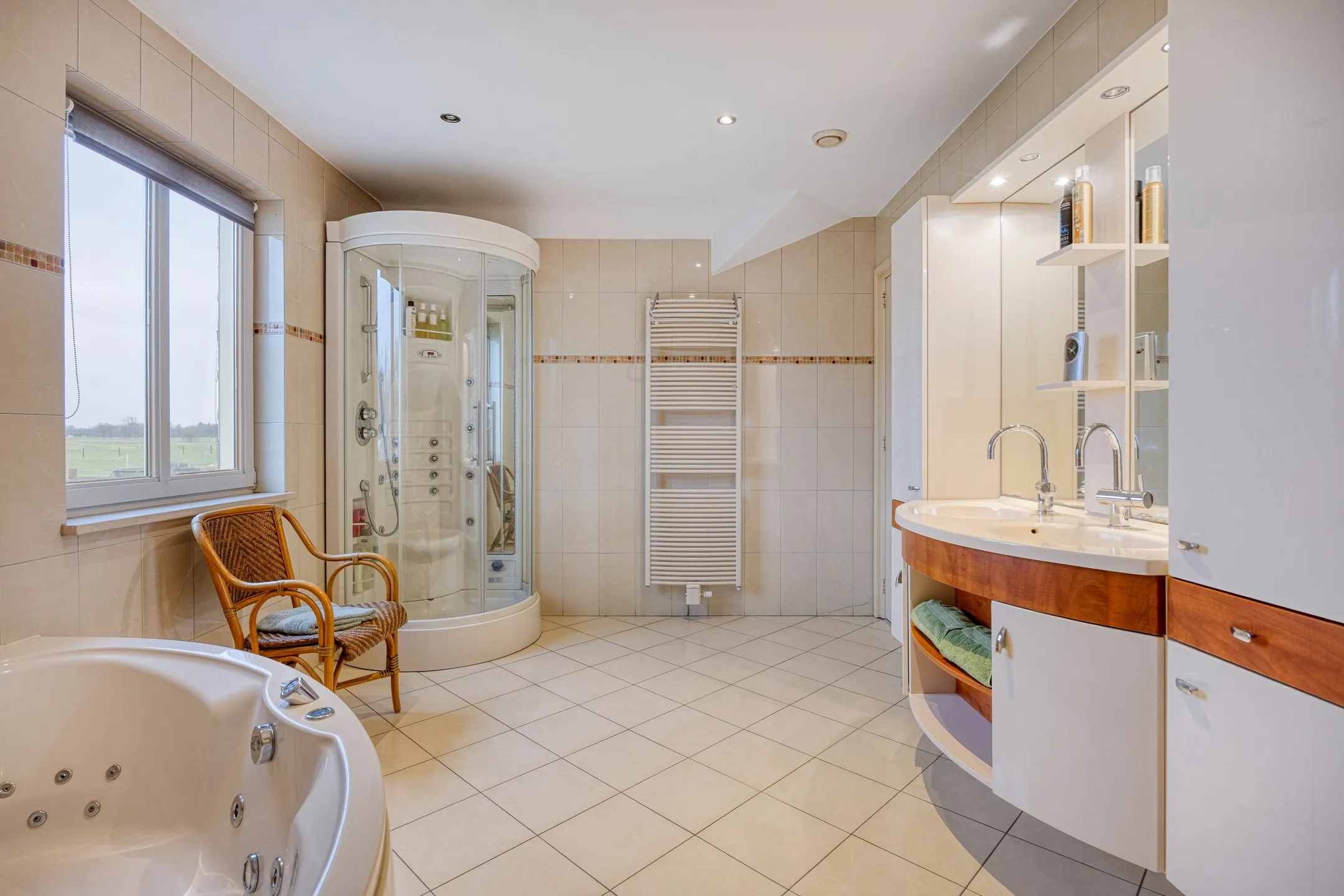 De eerste verdieping telt 4 volwaardige slaapkamers, waaronder een slaapkamer met en-suite badkamer, en een tweede badkamer met bad, douche en wastafel.