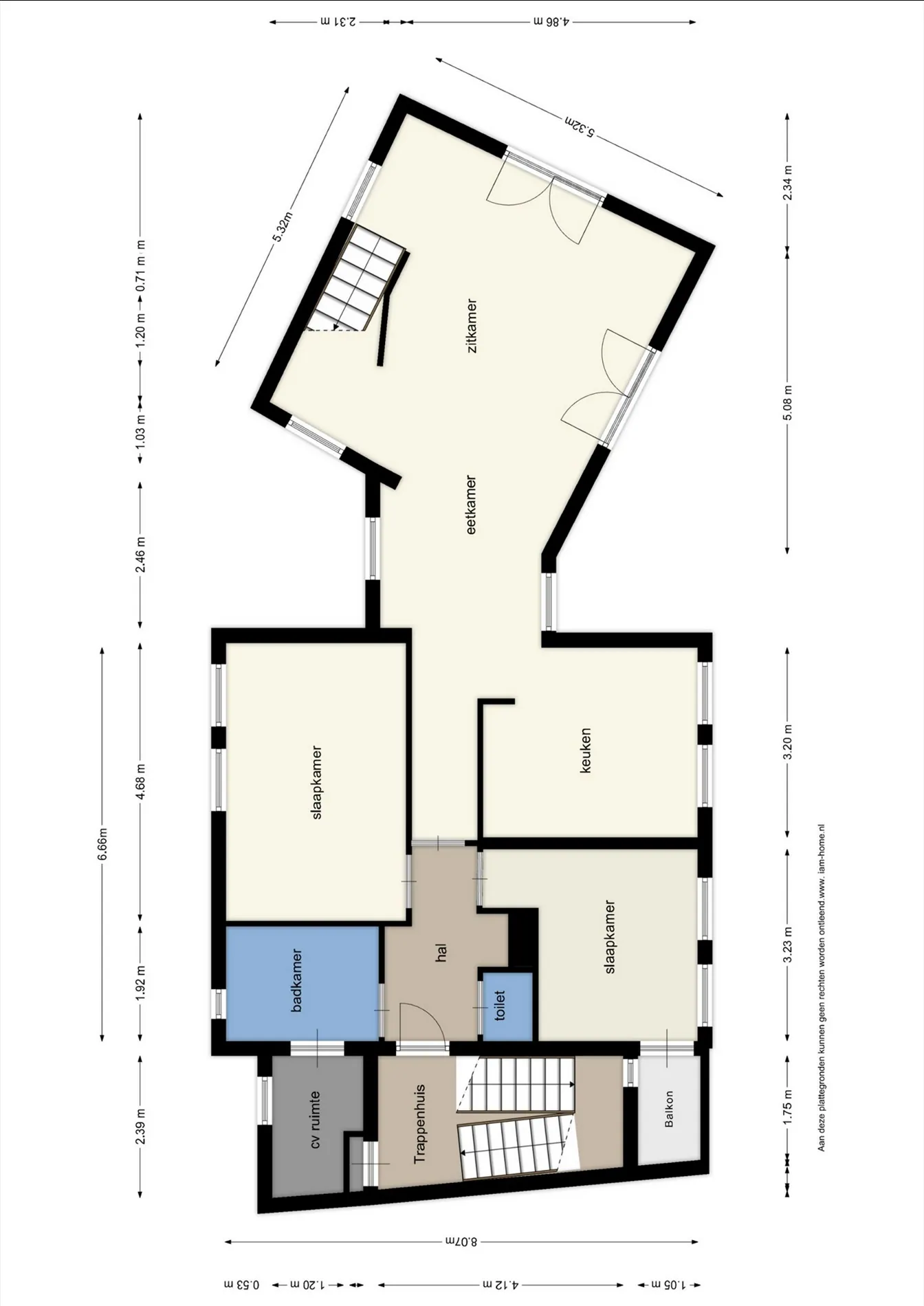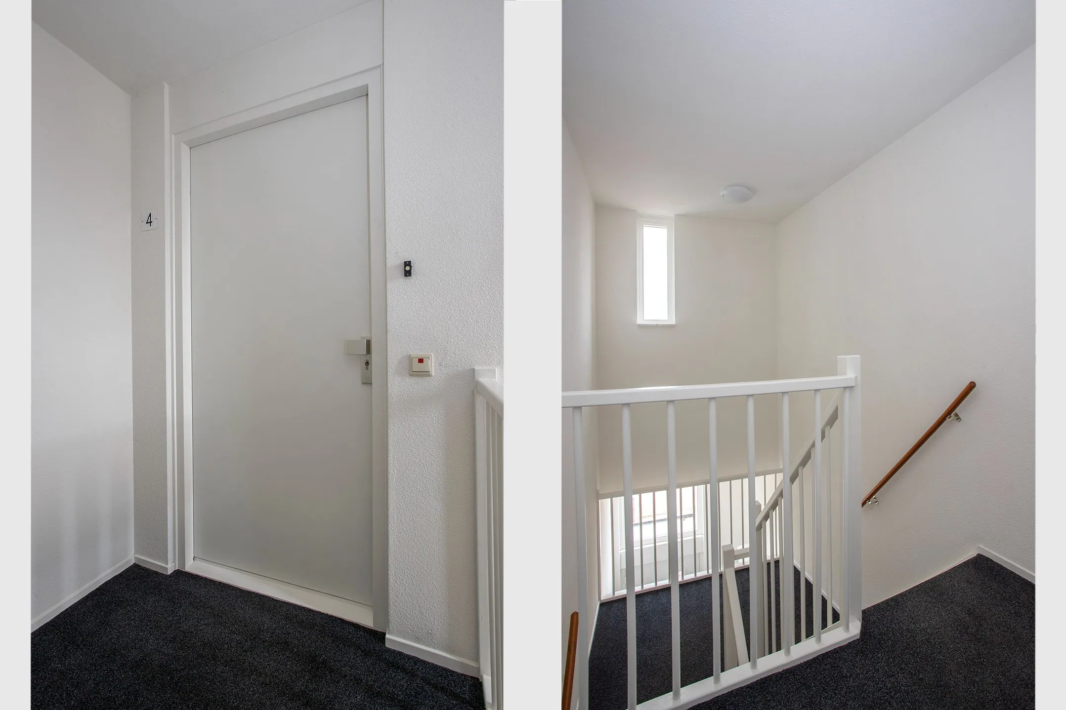 He betreft hier een maisonnette wat onderdeel is van een kleinschalig appartementencomplex met 2 eenheden. Via een gezamenlijk trappenportaal bereik je de entree van deze woning. Buiten de woning ligt bij de entree de meterkast (6 groepen). De woning is op de hele verdieping voorzien van een mooie, recente gelegde pvc-vloer. Alle ramen zijn voorzien van dubbel glas en alle wanden en plafonds zijn netjes gestukt.