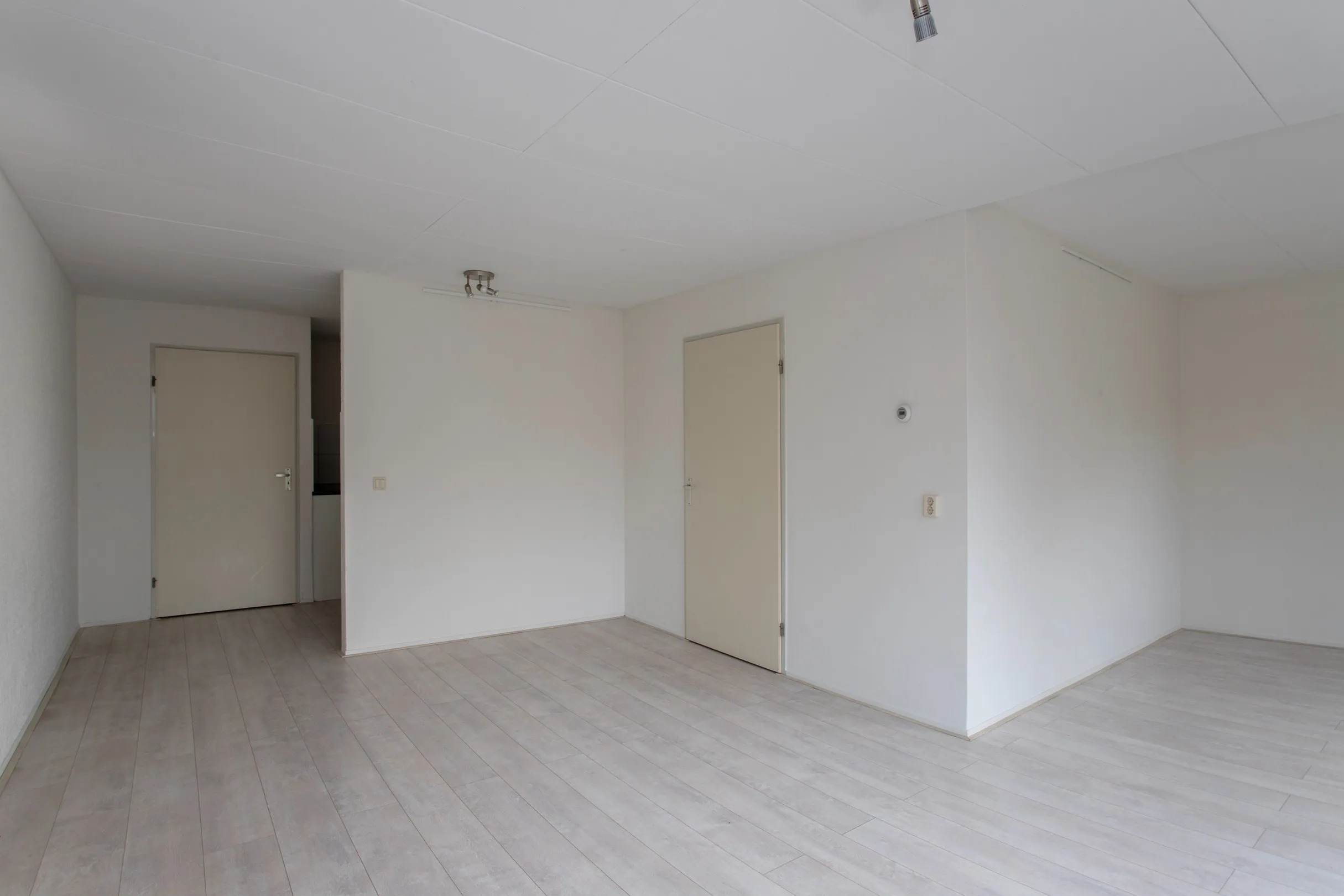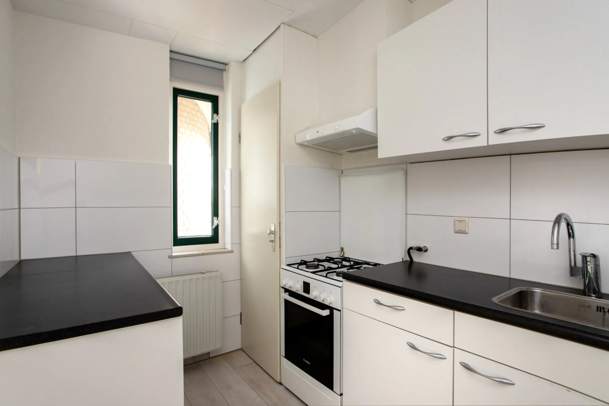De woonkamer is relatief ruim, met veel natuurlijke lichtinval en ventilatie, en is uitgerust met een balkon dat een prachtig uitzicht biedt over een gedeelte van de wijk Heikant-Oost. De halfopen keuken is aangrenzend en heeft eveneens natuurlijke lichtinval en ventilatie. De keuken is voorzien van een RVS-spoelbak, een los 4-pits gasstel, een afzuigkap, een losse koelkast en kastruimte. Verder is er een extra inbouwkast met daarin de cv-installatie (Remeha Avanta).