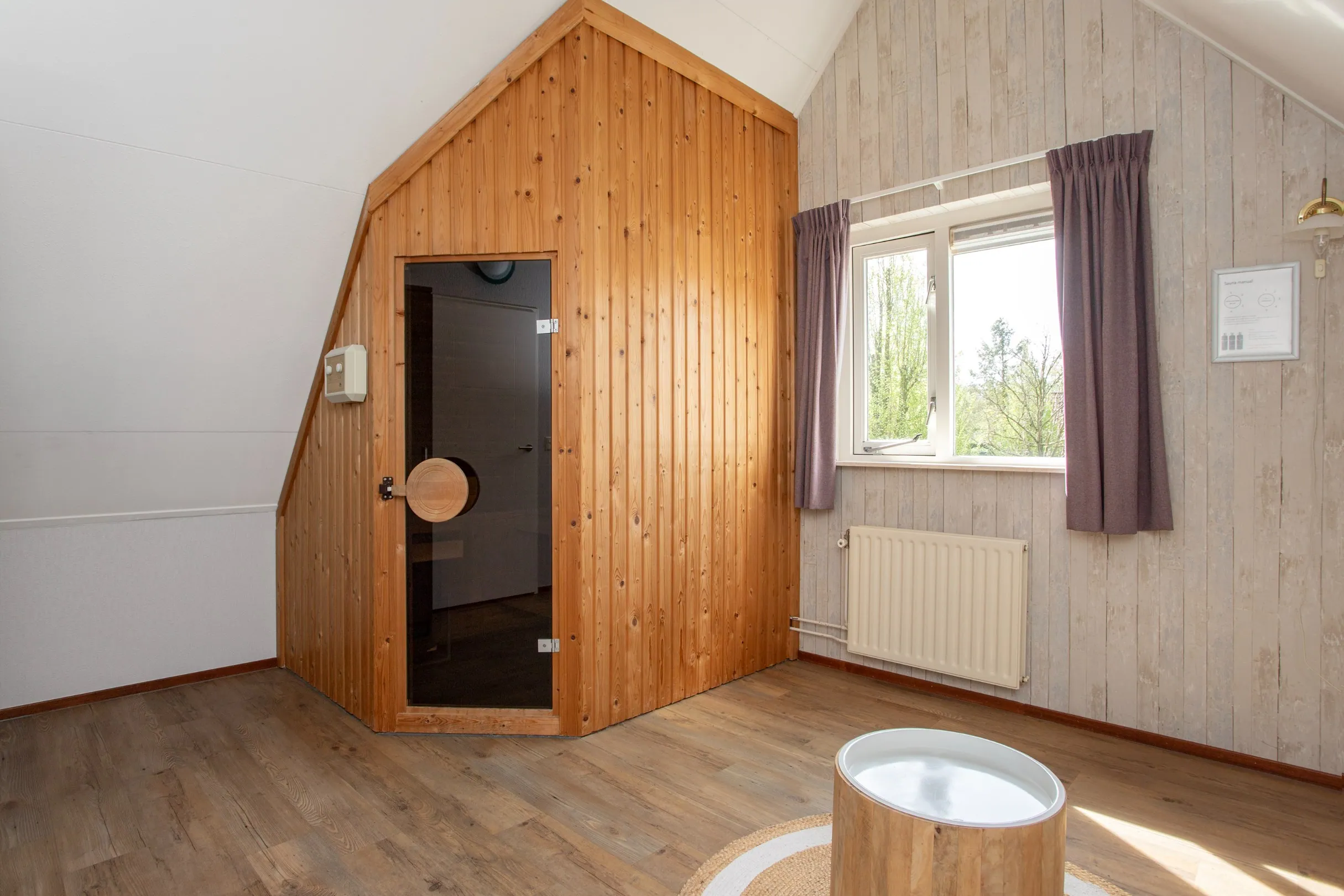 - Het betreft een type woning 4L2 en heeft als extra's t.o.v. andere woningen een opgiet sauna, buitenhaard, overdekt terras met geïntegreerde verlichting, lounge set, hangmat en barbeque.