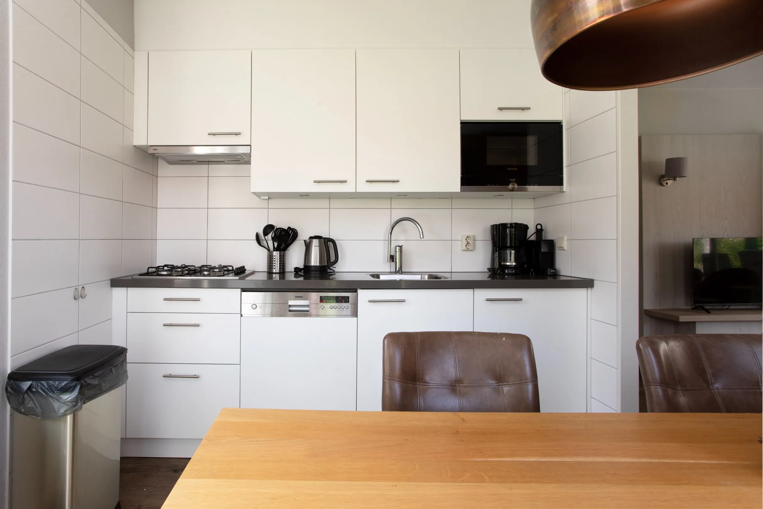 - Open keuken (recent vernieuwd) voorzien van inbouwapparatuur: oven, magnetron, vaatwasser, koelkast en 4-pits gasfornuis met afzuigkap