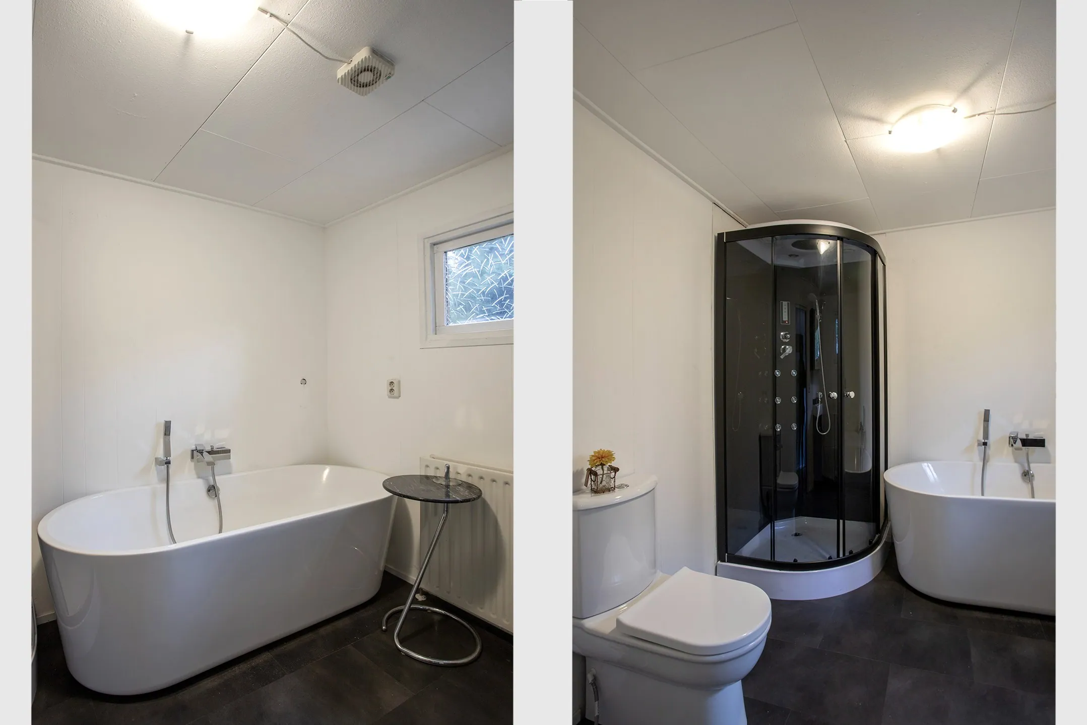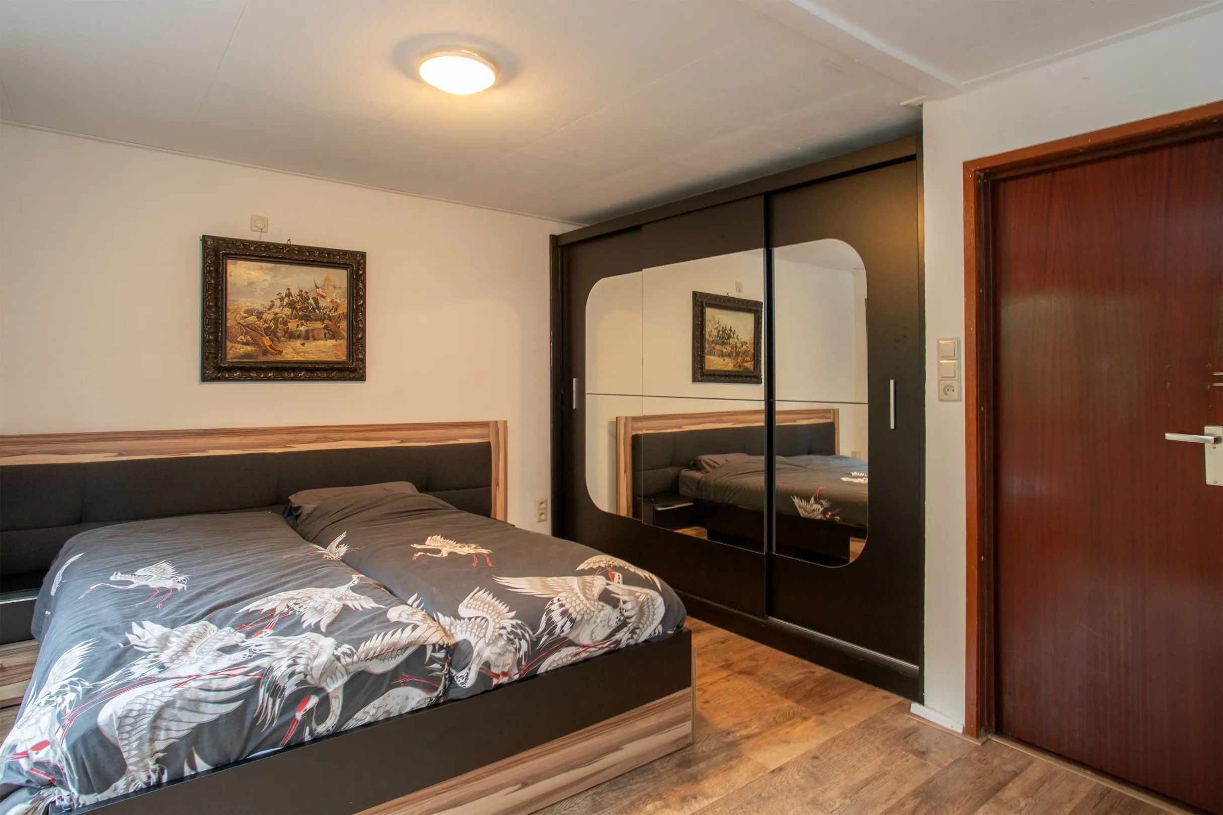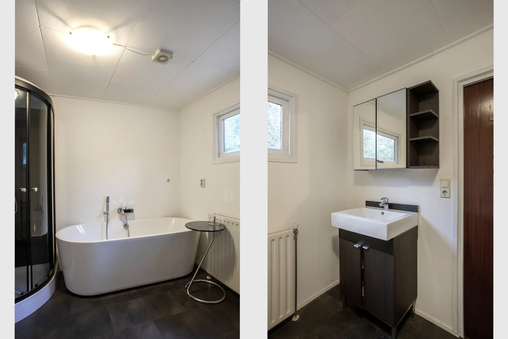 De woning beschikt verder over een grote slaapkamer met vaste kast, een ruime badkamer met luxe vrijstaand bad, douchecabine, wastafel en toilet, en een nette laminaatvloer die overal doorloopt.