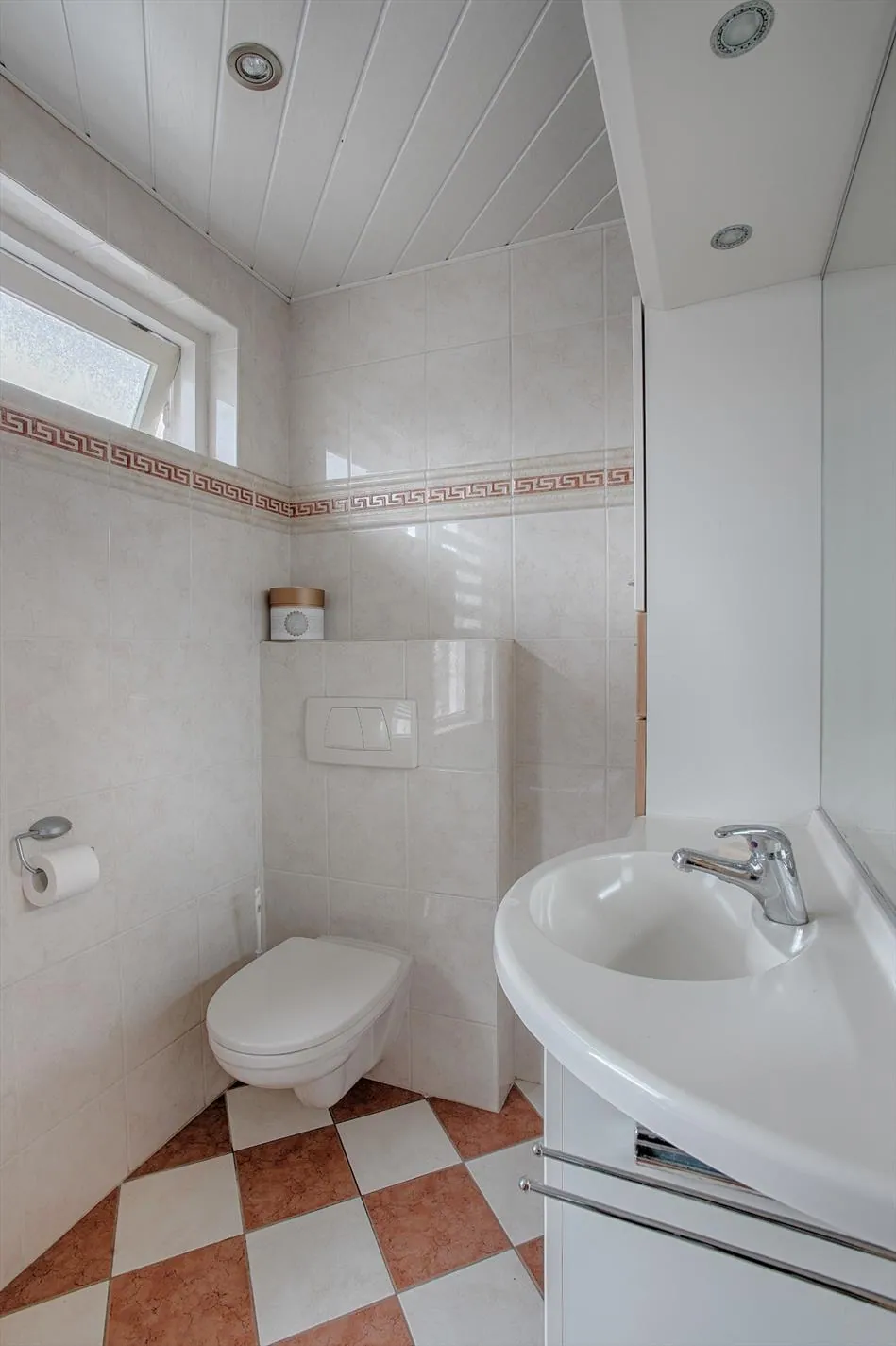 Badkamer: op de badkamer is elke m² goed benut met een bad, douche, hangend toilet en een wasbak in badmeubel. Er is zowel natuurlijke als mechanische ontluchting aanwezig en de badkamer is plafondhoog betegeld.
