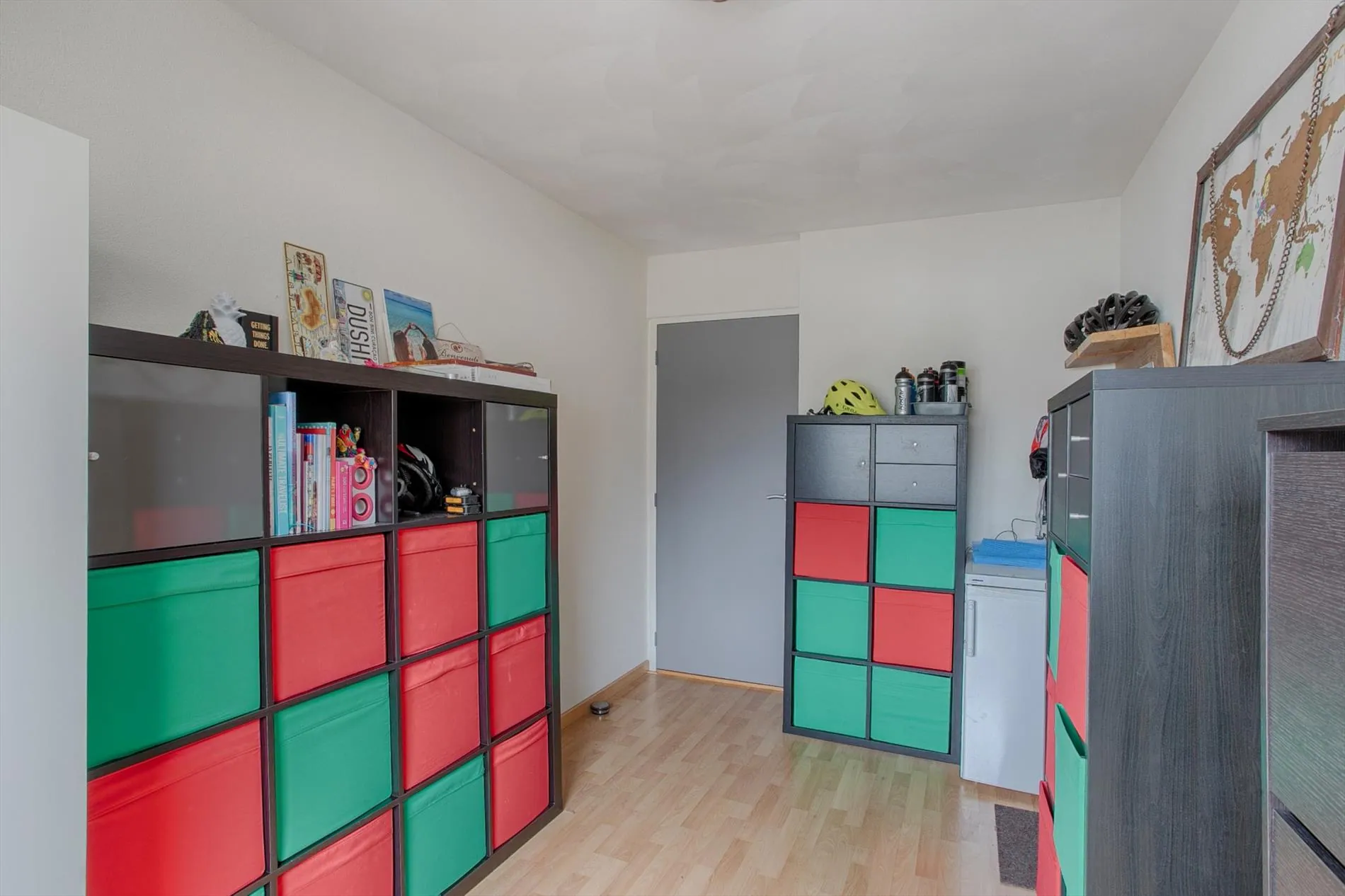 Slaapkamer 4: allereerst een grote 4e slaapkamer. Deze kamer is royaal en voorzien van een groot isolerend Velux dakraam. Onder de schuine kanten is bergruimte gecreerd.